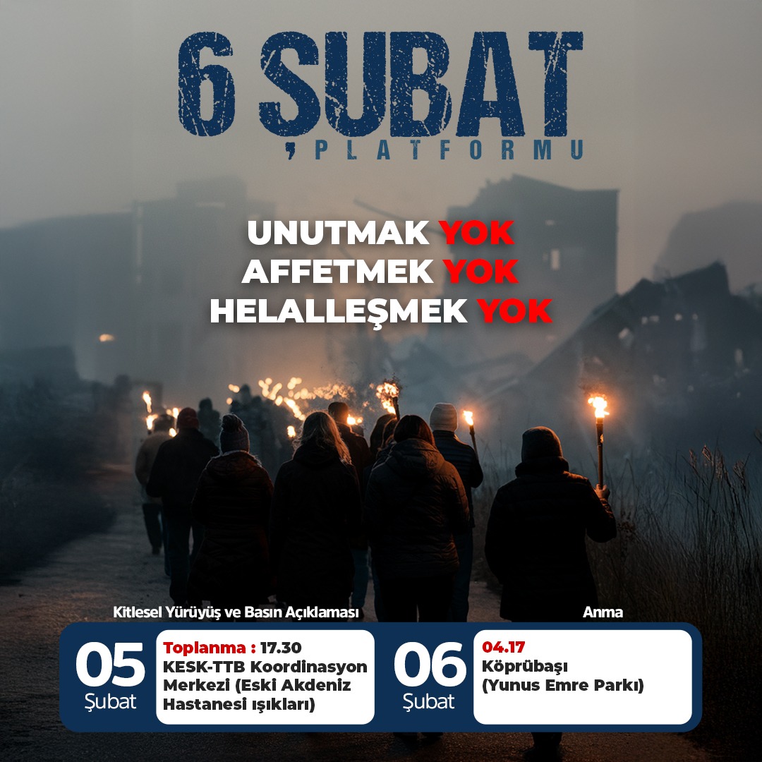 🕤 Saat: 21:30Hafızamızdan silinmeyecek bu büyük acıyı birlikte paylaşmak için sizleri de bekliyoruz. #Unutmayacağız #6Şubat pic.twitter.com/Uyelkao19U