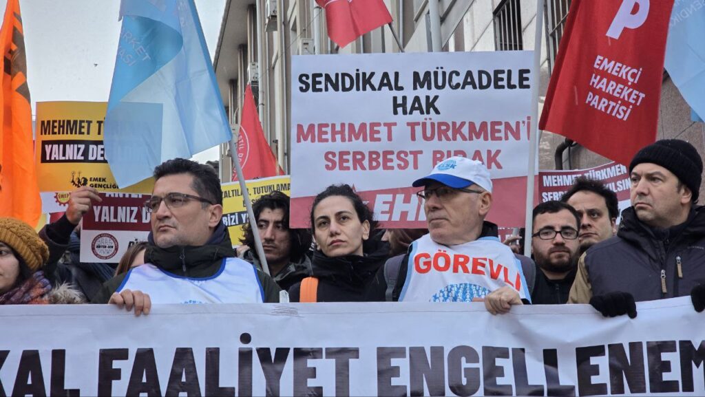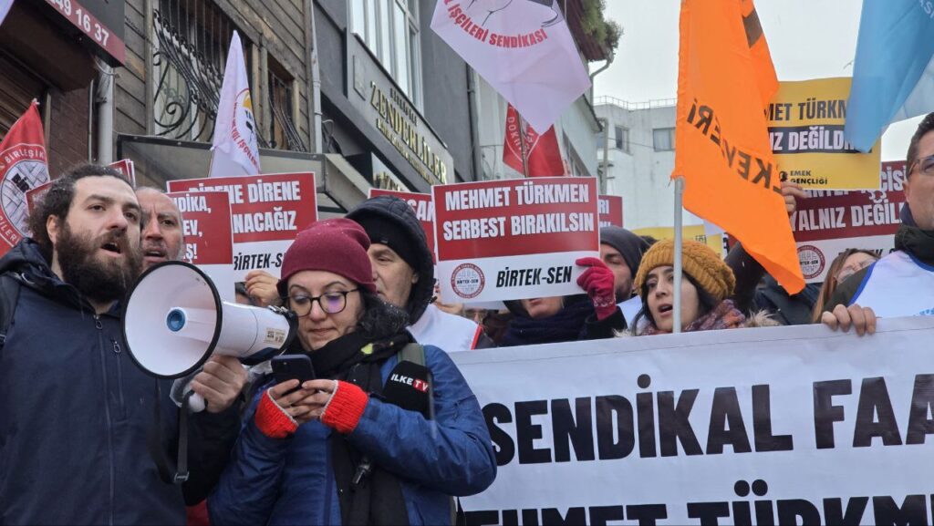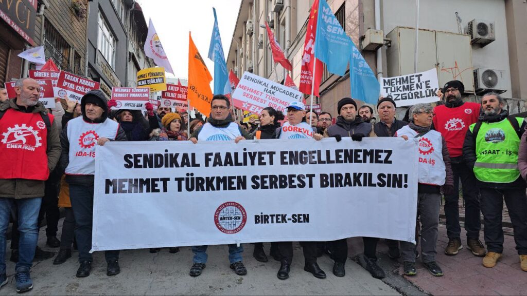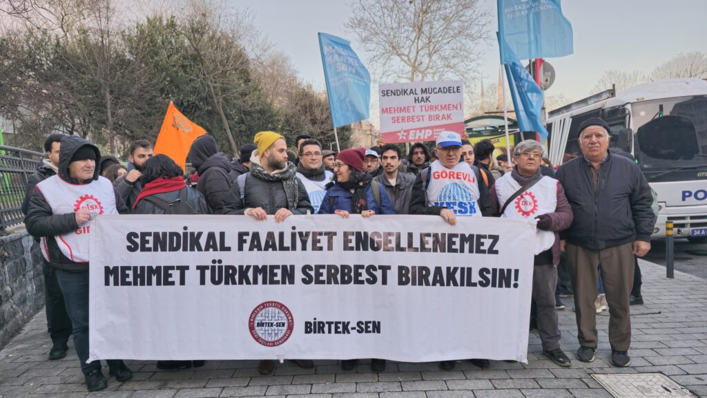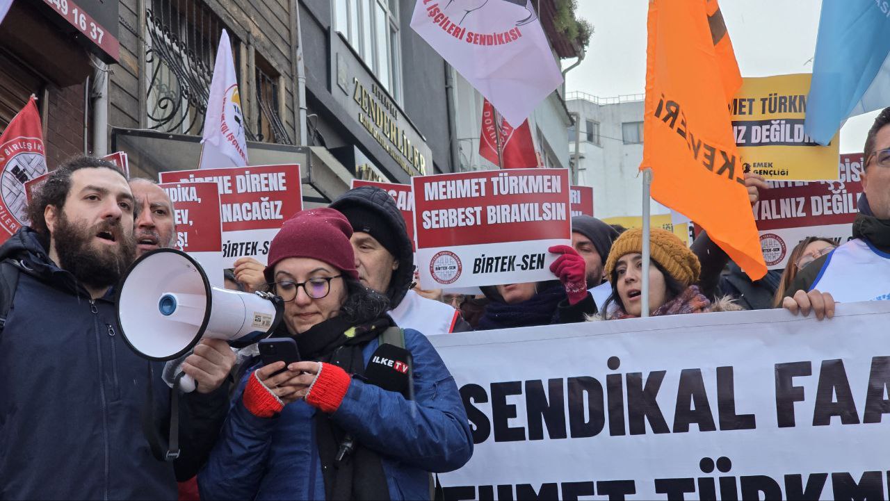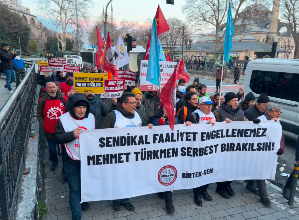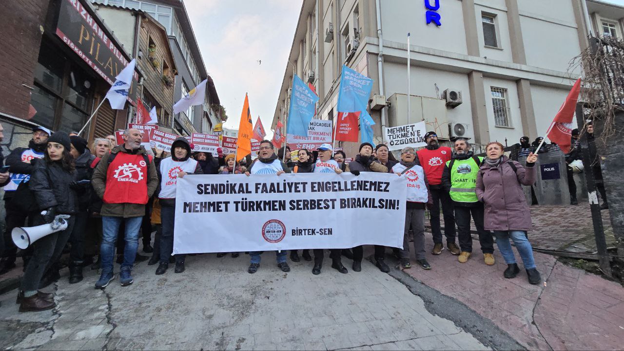 Bugün burada, sendikal mücadele verdiği için tutuklanan BİRTEKSEN Genel Başkanı Mehmet Türkmen’in yanında olduğumuzu haykırmak için bir aradayız.