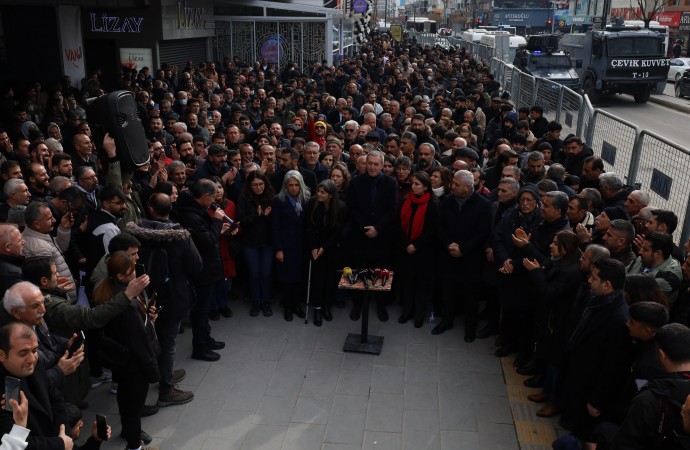 Van Büyükşehir Belediyesi’ne kayyum atanmasının ardından kentte başlayan protestolar devam ediyor. DEM Parti’nin yaptığı çağrıyla Emek Partisi (EMEP), Toplumsal Özgürlük Partisi (TÖP), Yeşil Sol Parti, Emekçi Hareket Partisi (EHP), Sosyalist Dayanışma Platformu (SODAP), Sosyalist Yeniden Kuruluş Partisi (SYKP), milletvekilleri ve belediye eşbaşkanların katılımıyla Cumhuriyet Meydanı’nda açıklama yapıldı