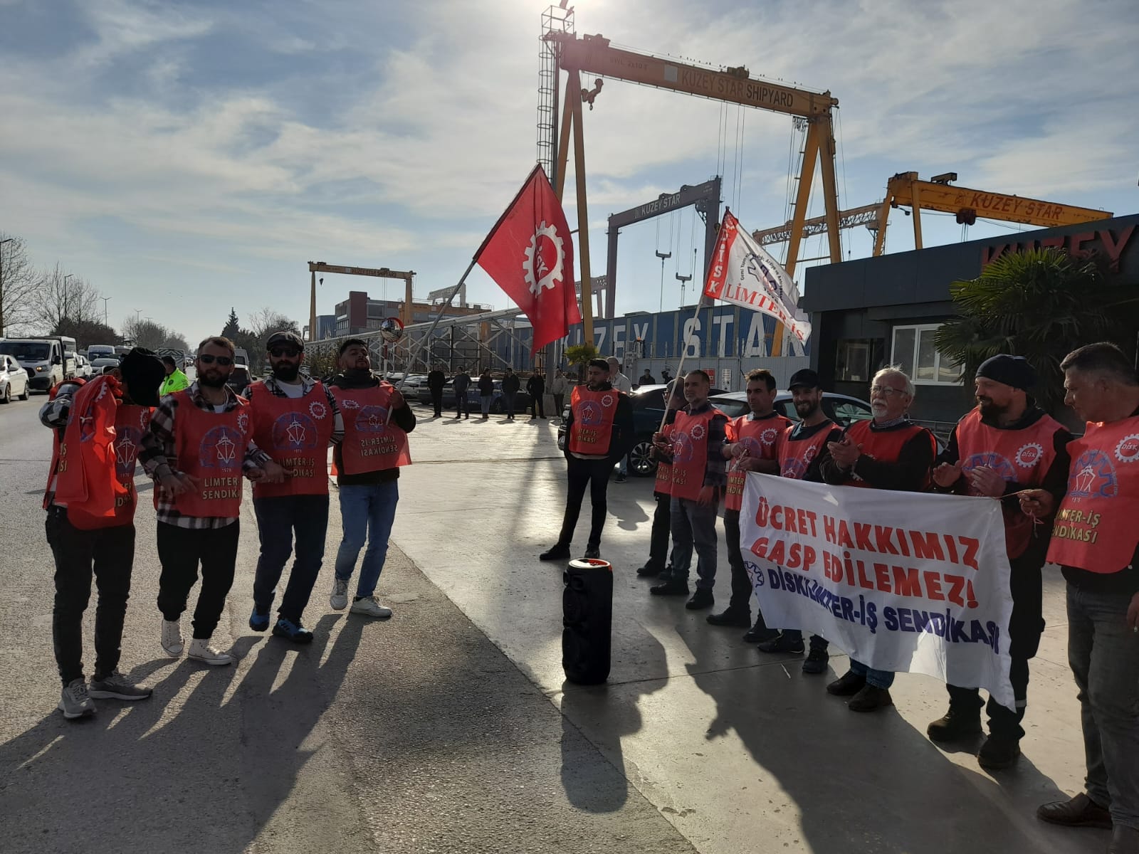 İstanbul Tuzla’da bulunan Kuzey Star Tersanesi’nde işten çıkarılan işçilere, patron tarafından verilen ocak ayı ücreti, kıdem ve ihbar tazminatlarının ödeneceği sözü tutulmadığı için başladıkları direnişin sekizinci gününde işçiler, direnişe devam ediyor. Polisin ablukayla engelleme girişimine rağmen halay ve sloganlarla direnişlerini kararlı bir şekilde sürdüren işçilerin, fabrika önünde bekleyişi devam ediyor.