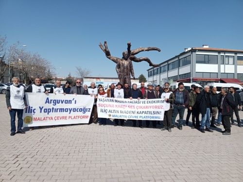 Arguvan’da 4 köyün maden sahası ilan edilmesi üzerine Malatya Çevre Platformu (MAL-ÇEP) Nazım Hikmet Meydanı’nda basın açıklaması yaptı. Bölgede “4. Grup Maden” olarak adlandırılan başta altın olmak üzere toryum, gümüş, nikel gibi madenler için çalışma yapılacak.