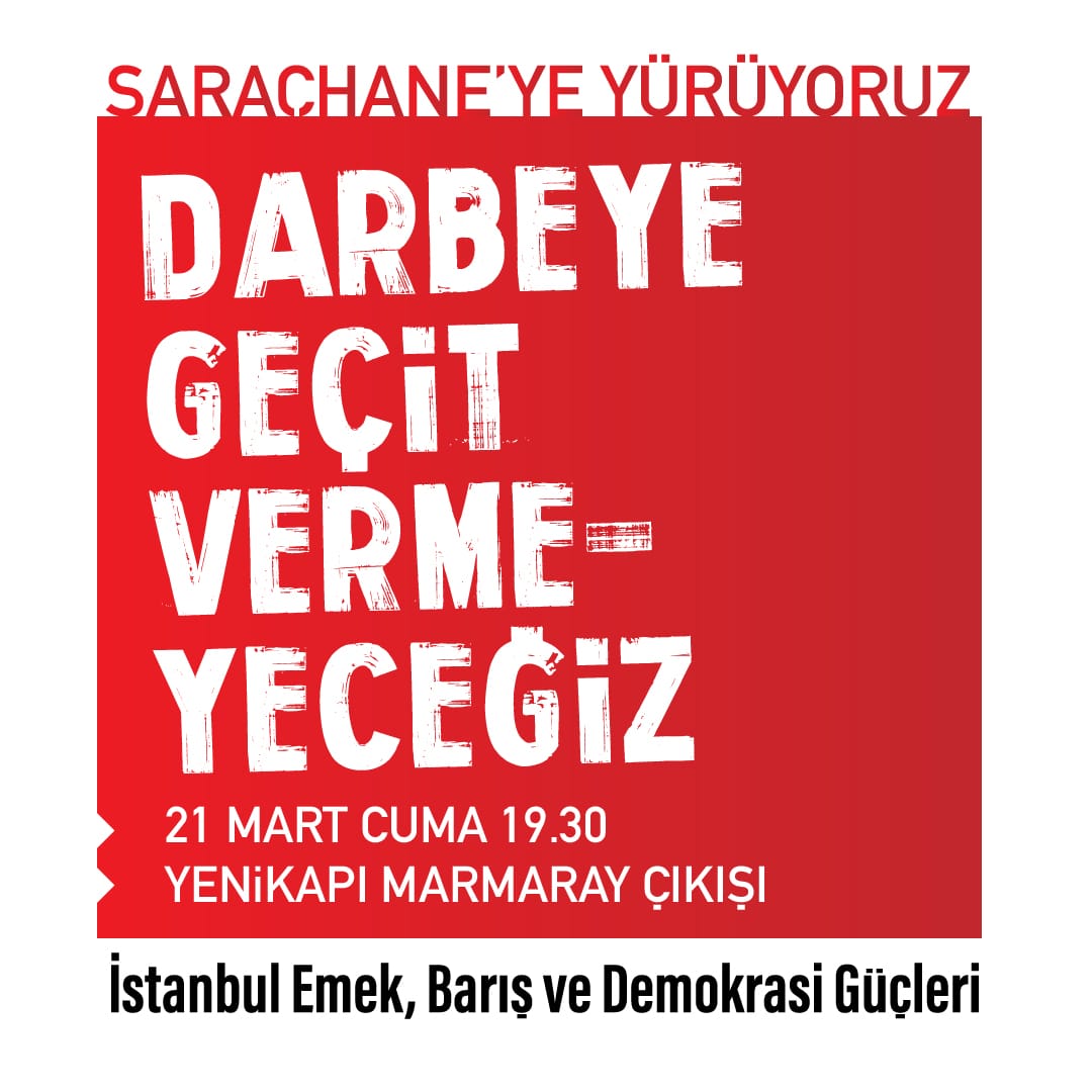 İstanbul’daki üniversite öğrencileri 17.00’de Beyazıt Meydanı’nda, İstanbul Emek Barış ve Demokrasi Güçleri ise 19.30’da Yenikapı Marmaray İstasyonu’nda buluşup Saraçhane’ye yürüyecek