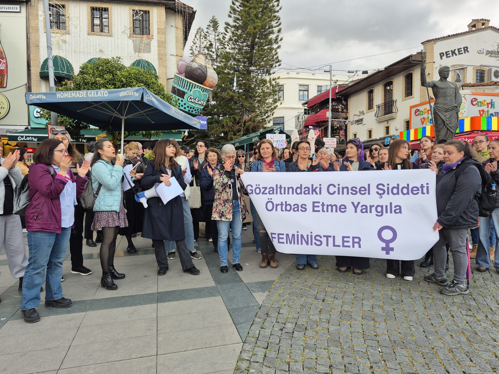 Antalya’da feministler Attalos Meydanı’nda “Gözaltındaki cinsel şiddeti örtbas etme, yargıla” diyerek bugün (5 Nisan) saat 18.00’de bir araya geldi. Eylemde bir basın açıklaması yapıldı.