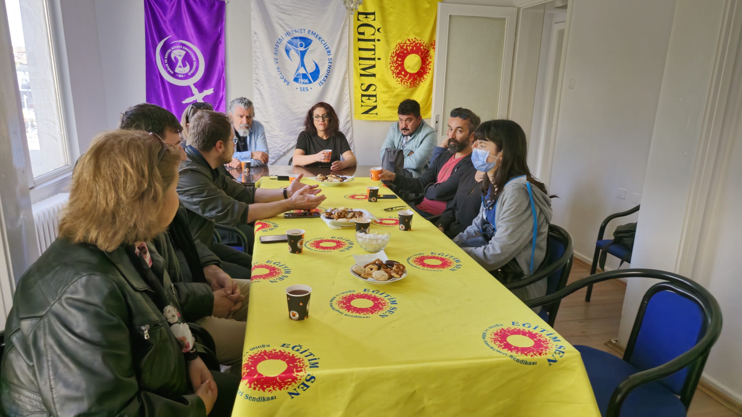 Eğitim Sen, SES, BES sendikalarının Edirne şubelerinin yer aldığı KESK il binasında kamu emekçileri ve yerel basın temsilcileri ile bir araya gelen Halkevleri heyeti, 19 Mart sonrası kentte yaşananlar ve dayanışmanın nasıl ilerletileceği konusunda görüş alışverişinde bulundu.