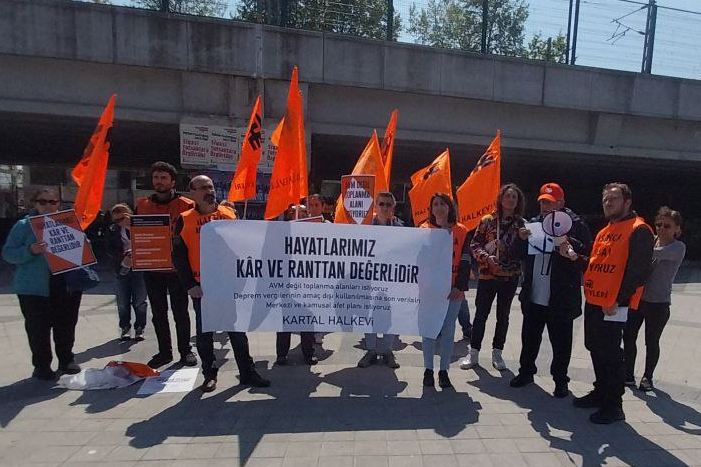 Kartal Halkevi’nin çağrısıyla Kartal Neyzen Tevfik Meydanı’nda yapılan eylemde Halkevciler, 1999’dan beri deprem vergisi toplanmasına rağmen toplanan paraların deprem önlemleri için harcanmadığını hatırlattı. Kartal’ın riskli alanlardan biri olduğunu hatırlatan Halkevciler, “AVM değil, toplanma alanı istiyoruz” dedi. Halkevciler deprem vergilerinin amaç dışı kullanımına son verilmesini ve merkezi kamusal deprem planı taleplerini de ekledi.