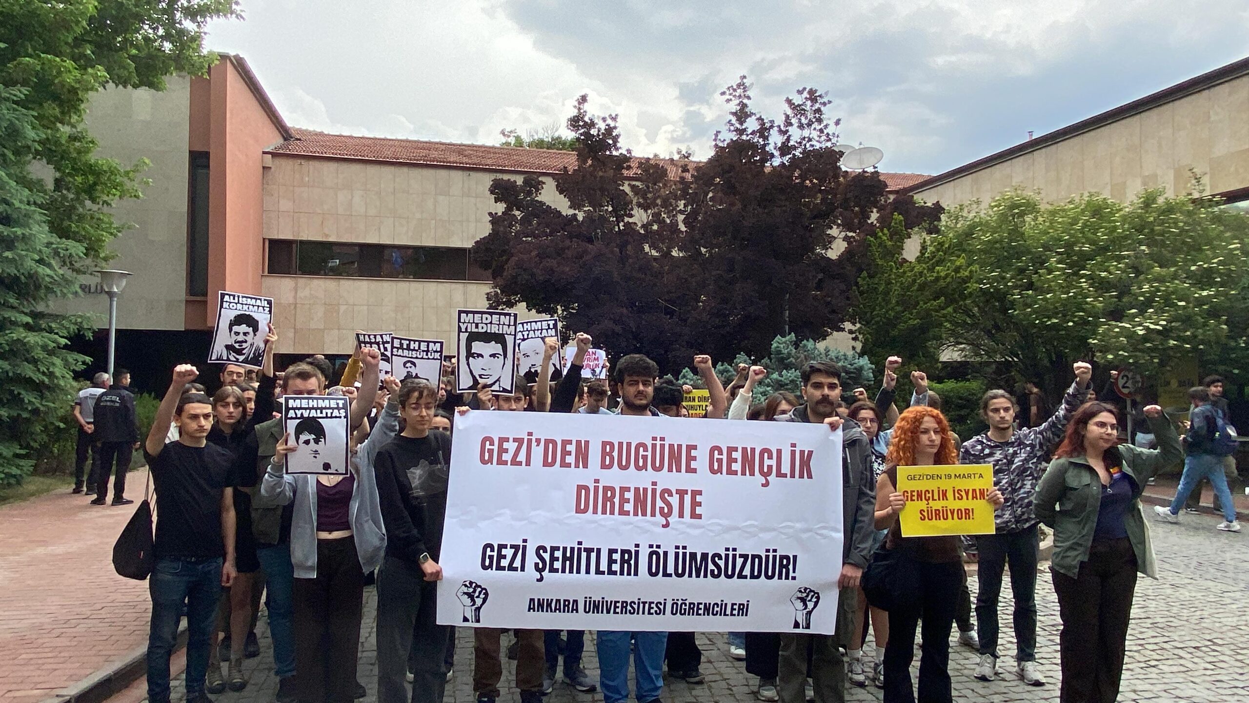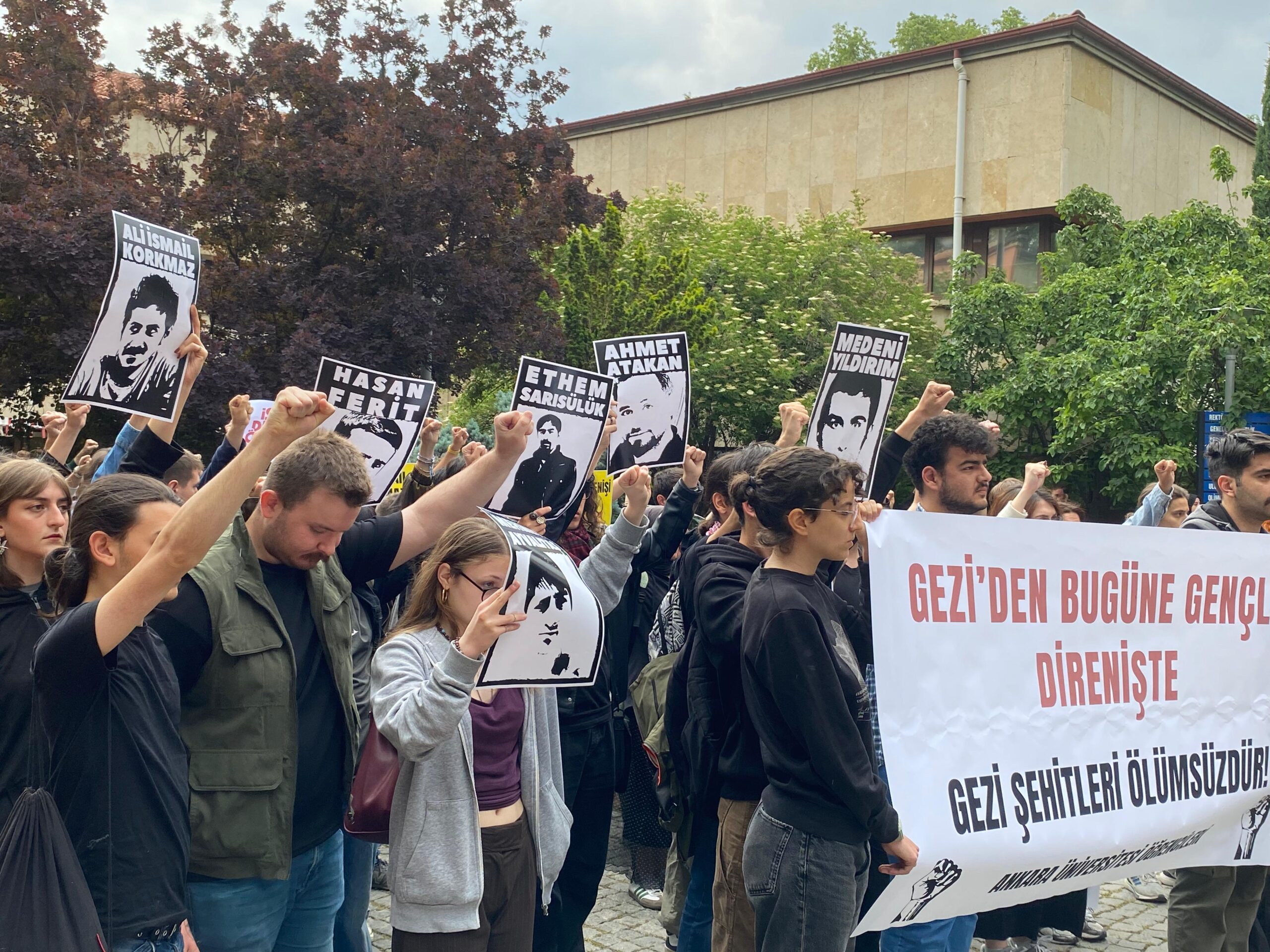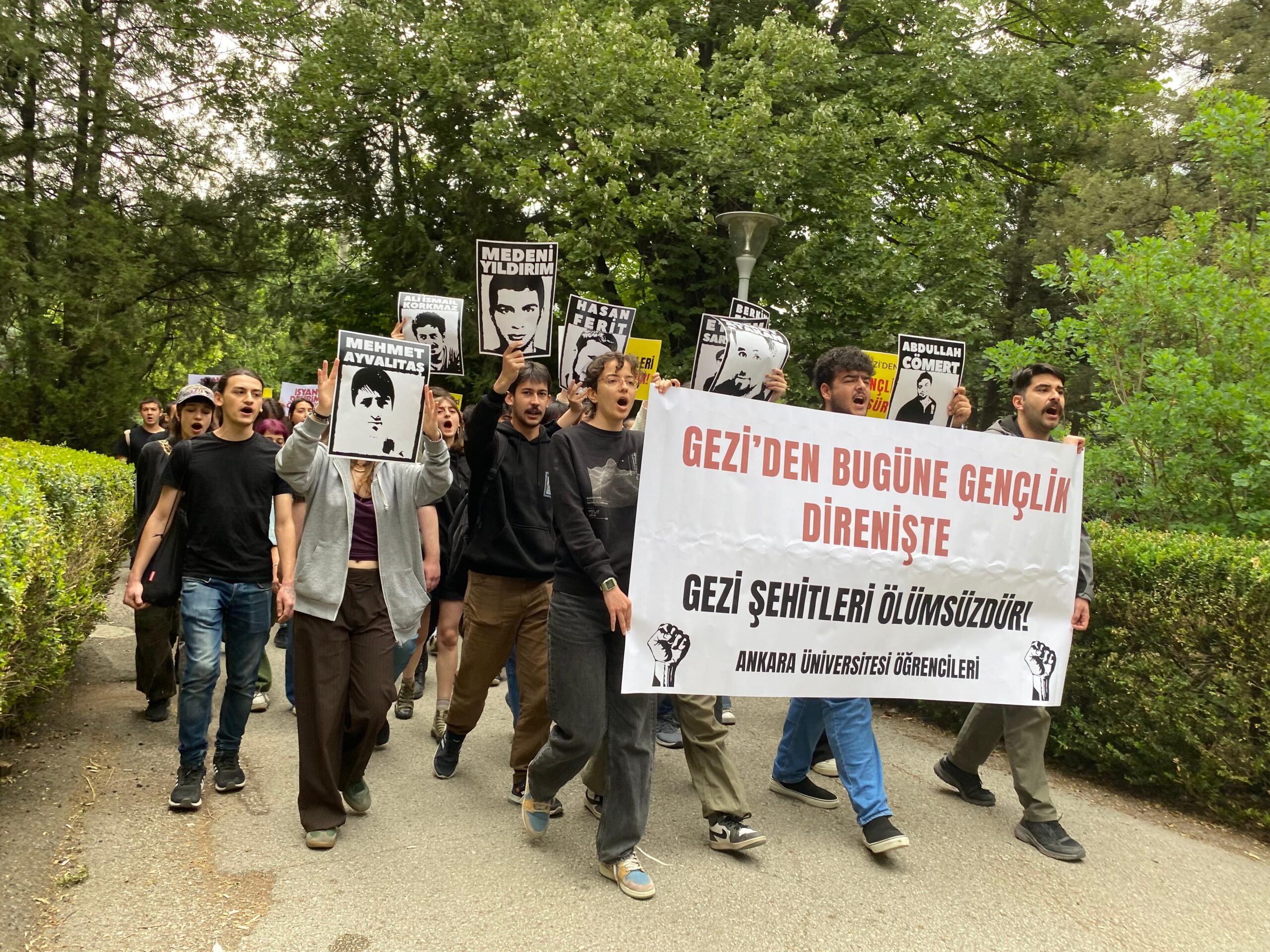 Ankara Üniversitesi’nde üniversiteliler, Gezi İsyanı’nın 12. yıldönümünde Tandoğan Kampüsü’nde yürüdü. Yürüyüş ardından Rektörlük binasının önünde basın açıklaması yapan üniversiteliler, açıklamada “Kampüslerden sokaklara Gezi şehitlerinin mücadelesiyle yürüyoruz, her adımımızda onları hatırlıyoruz. Katiller hesap verene, kaybettiklerimizin düşlerindeki özgür dünyayı gerçek kılana dek direnişimizi sürdüreceğiz” dedi
