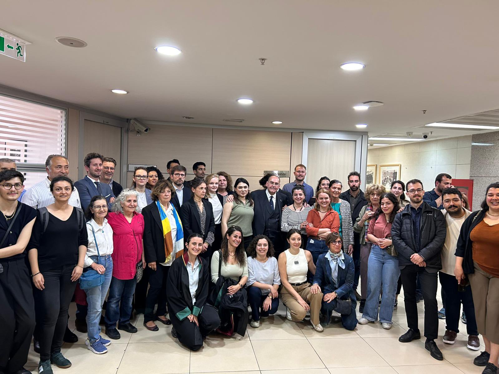 Çağdaş Hukukçular Derneği (ÇHD) üyesi avukatlar Selçuk Kozağaçlı, Özgür Yılmaz, Barkın Timtik, Oya Aslan, Gülvin Aydın Savran ve Güçlü Sevimli’nin mesleki faaliyetleri gerekçe gösterilerek yargılandığı davanın duruşması görüldü. Duruşmayı, Avrupa baroları ve uluslararası hukuk kurumlarından temsilciler ve çok sayıda avukat takip etti.