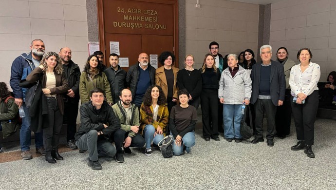 Gazeteciler Nazım Daştan ve Cihan Bilgin’in, Kuzey ve Doğu Suriye’de Türkiye’nin SİHA saldırısında katledilmesini 21 Aralık 2024 tarihinde protesto eden yedi gazeteci ve iki siyasetçi hakkında açılan davanın ikinci duruşması İstanbul 24’üncü Ağır Ceza Mahkemesinde görüldü. “Örgüt propagandası yapmak”, “Kanuna aykırı toplantı ve yürüyüşlere silahsız katılarak ihtara rağmen kendiliğinden dağılmama ile Toplantı ve Gösteri Yürüyüşleri Kanunu’na muhalefet” iddiasıyla yargılananlar duruşmaya katılmazken, avukatları hazır bulundu.