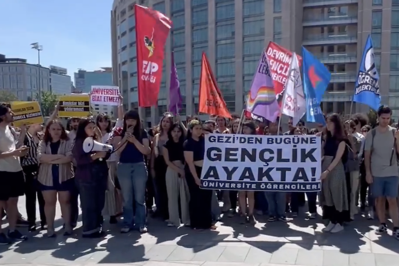 Üniversiteler özgür düşüncenin, eşitliğin ve bilimin alanı olması gerekirken; baskıların, yasakların ve polis ablukasının merkezine dönüştürülmek isteniyor. Ancak biz, bu kampüsleri savunmaktan, yeniden özgürleştirmekten geri durmayacağız. bizler yalnız bugünü değil, geleceği de savunuyoruz. Yoksulluğa, güvencesizliğe ve adaletsizliğe karşı bir yaşam alternatifi kurmak isteyen bir kuşağız. Artık böyle yaşamak istemiyoruz. Elimizden her şeyi alındığı, yaşam güvencemizin olmadığı bir yerde artık kaybedecek bir şeyimiz yok. Sonuna kadar mücadele etmekte kararlıyız. Eğer bugün bir suçtan bahsedilecekse, o suç; Gezi’yi anan öğrencilerin gözaltına alınmasıdır. Suç; kampüsleri öğrencilerden değil, faşist gruplardan korumak yerine gençleri hedef almaktır. Suç; üniversiteyi polisle, özel güvenlikle, baskıyla teslim alma girişimidir.