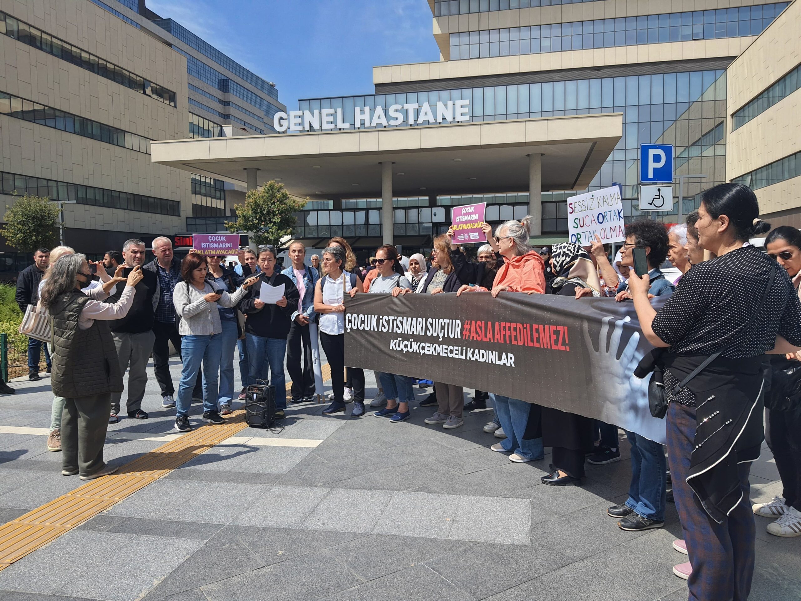 Küçükçekmeceli Kadınlar, Çam ve Sakura Şehir Hastanesi’nde tedavi gören 9 yaşındaki zihinsel engelli çocuğun istismara uğradığı yönündeki iddialar üzerine hastane önünde toplandı.