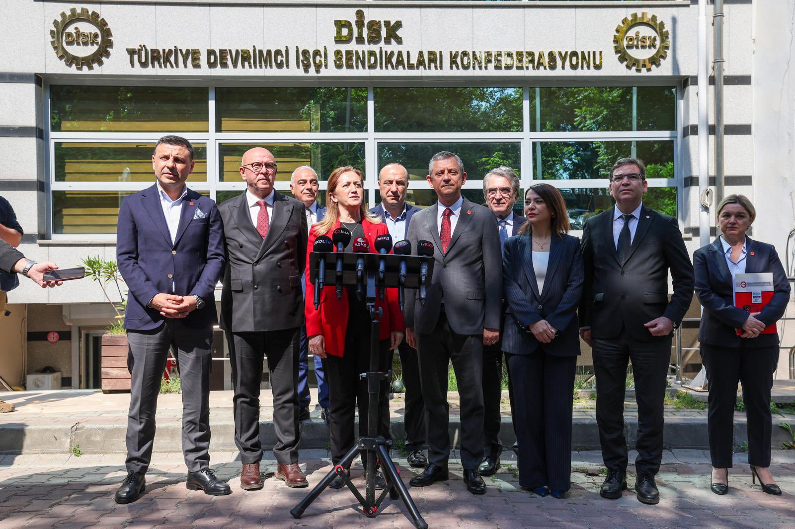 Özel, açıklamasında “Haziran ayı boyunca sürdüreceğimiz mücadelenin, yükselteceğimiz sesin ilk adımını atmak üzere DİSK ziyaret ederek güne başladık. Temel talebimiz şudur; Türkiye’de asgari ücret 1 yıl boyunca bir kuruş zam görmedi. Oysa bu ülkeyi yöneten iktidar, emekçilerden oy isterken şunu söylüyordu; ‘enflasyonist ortamda asgari ücrete yılda 4 zam düşünülebilir.’ Oyu aldıktan sonra emekçilere sırtını döndü” ifadelerini kullandı.