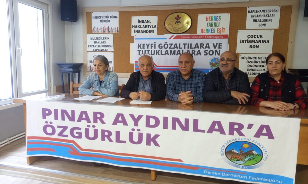 Dersim Dernekleri Federasyonu (DEDEF) ve Munzur Çevre Derneği, HDK soruşturması kapsamında 21 Şubat’tan beri Bakırköy Kadın Kapalı Hapishanesi’nde tutsak bulunan sanatçı Pınar Aydınlar için basın toplantısı yaptı