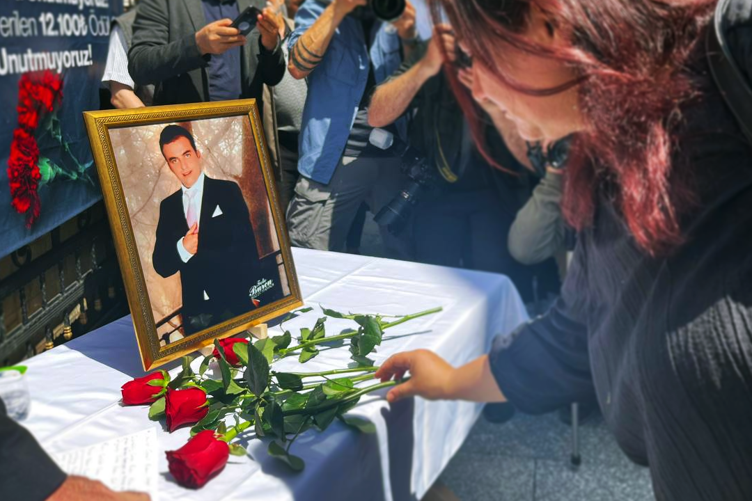 Konuşmaların ardından Uğur Kurt’un fotoğrafının da konulduğu masaya güller bırakıldı.