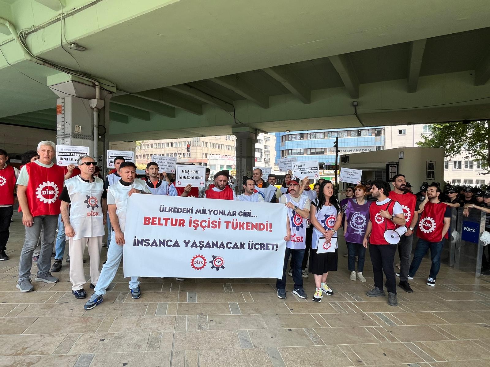 Beltur A.Ş. işçileri, uzun süredir DİSK Dev Turizm-İş Sendikası çatısı altında seslerini duyurmaya çalışıyor. Mecidiyeköy’de “insanca yaşanacak ücret” talebiyle bir araya gelenler eylem yaptı