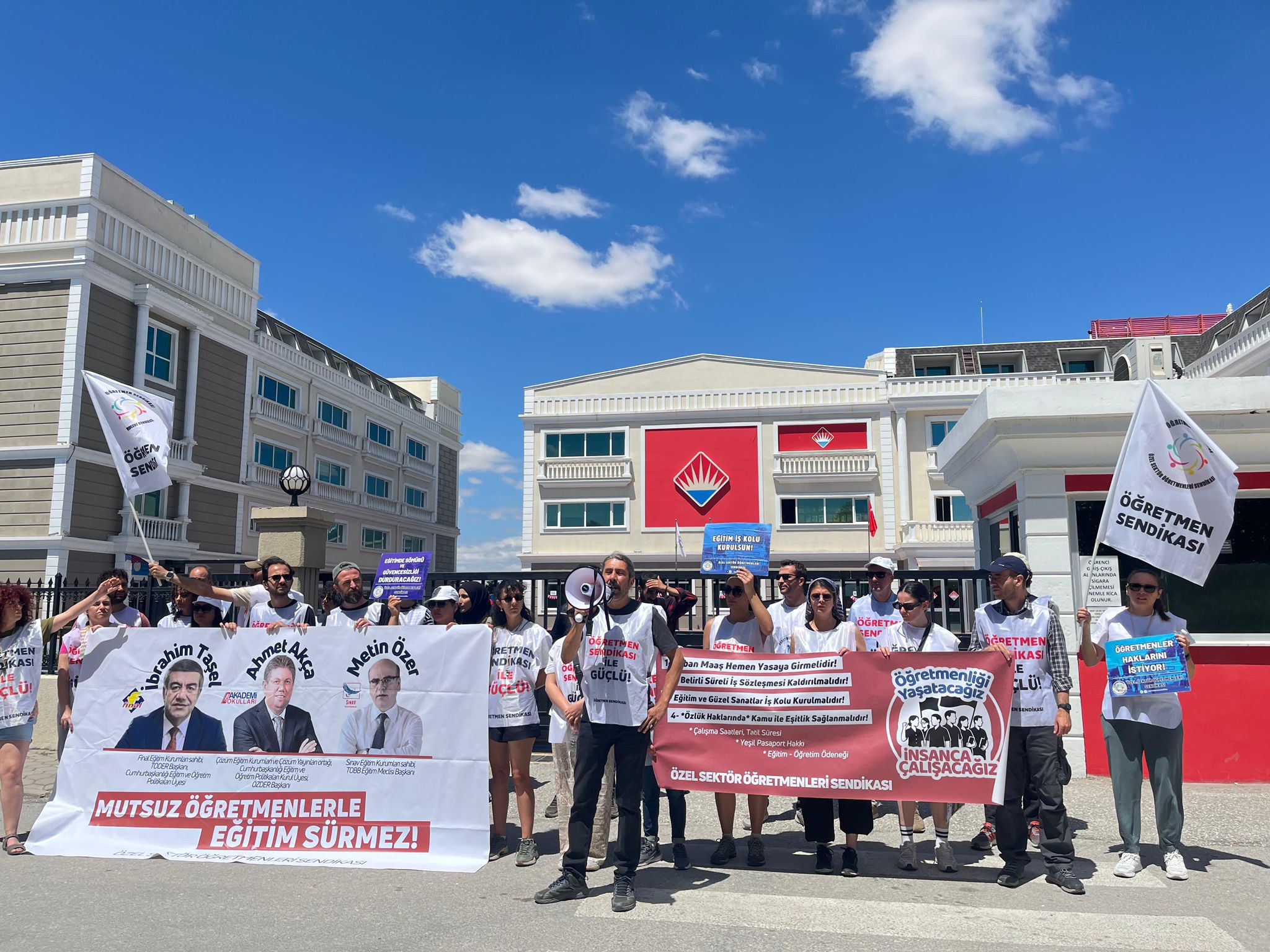 Öğretmenler Bahçeşehir Okulları patronlarına seslenerek “Milyonluk bağışları bırakın, öğretmenlerin haklarına bakın. Öğretmenler için daha insanca çalışma koşulları oluşturmaya bakın. Sendika burada, kapınızda. Öğretmenlerin hakları için mücadele etmeye devam edeceğiz” dedi.