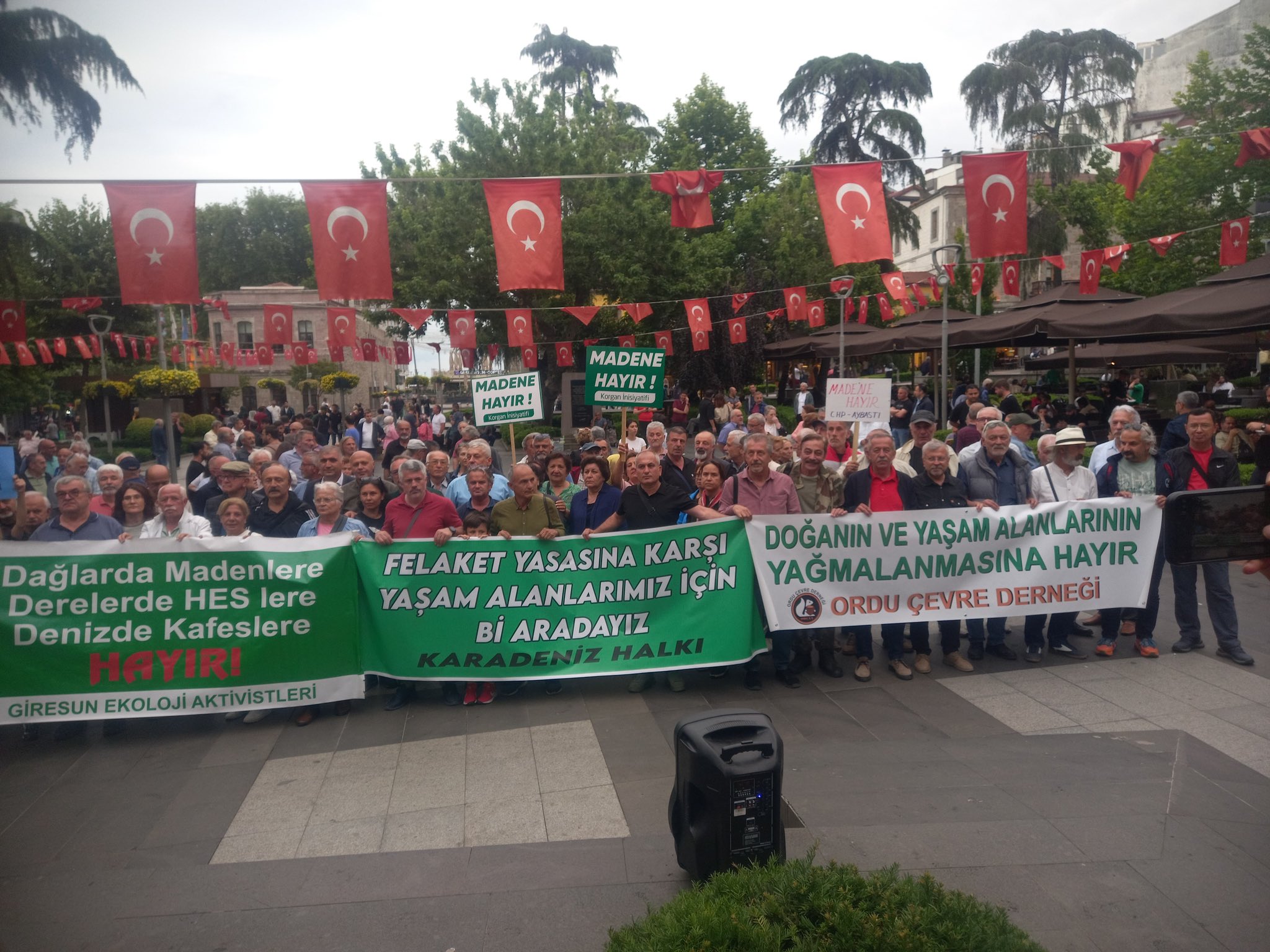 Yeşil Artvin Derneği, Trabzon Emek ve Demokrasi Platformu, Derelerin Kardeşliği Platformu, Ordu Çevre Derneği adına okunan ortak basın açıklamasında getirilmek istenen yasa tasarının topyekün doğa katliamının ilanı olduğunu dikkat çekilirken “Biz yaşam alanı savunucuları, toprağını, suyunu, ormanını, dağını, yaylasını, zeytinliğini seven ve sahip çıkan insanlar olarak buradayız. Altın için, kömür için, enerji için bu ülkenin dört bir yanını delik deşik etmeye çalışanlara karşı sesimizi yükseltiyoruz” ifadeleri kullanıldı. Yapılan basın açıklaması şöyle devam etti: