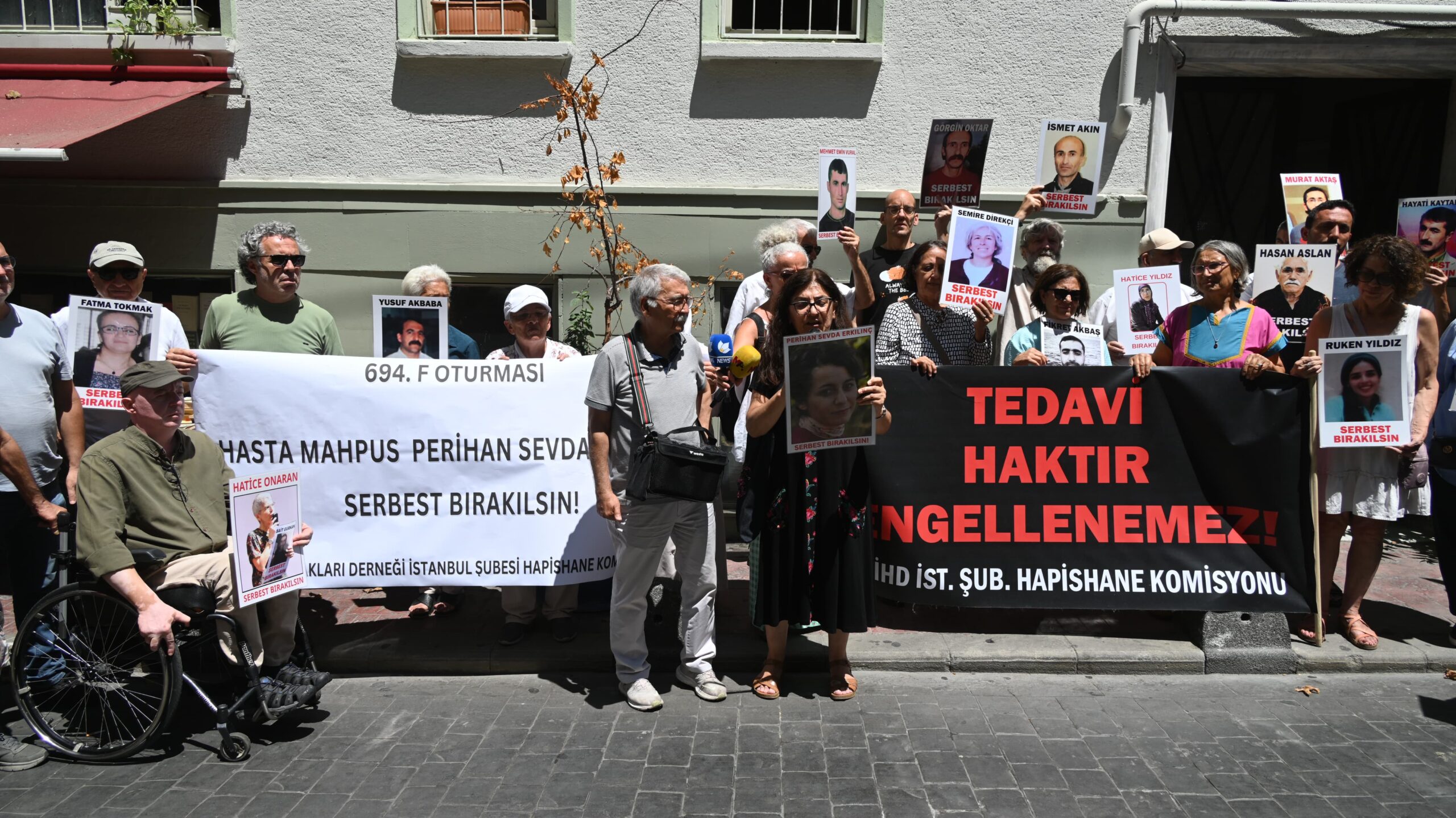 İnsan Hakları Derneği (İHD) İstanbul Şubesi Hapishane Komisyonu 694. F Oturması eylemini başta Bakırköy Kadın Kapalı Hapishanesi’nde tutulan hasta tutsak gazeteci Perihan Sevda Erkılınç olmak üzere bütün hasta tutsakların serbest bırakılması talebiyle yaptı.