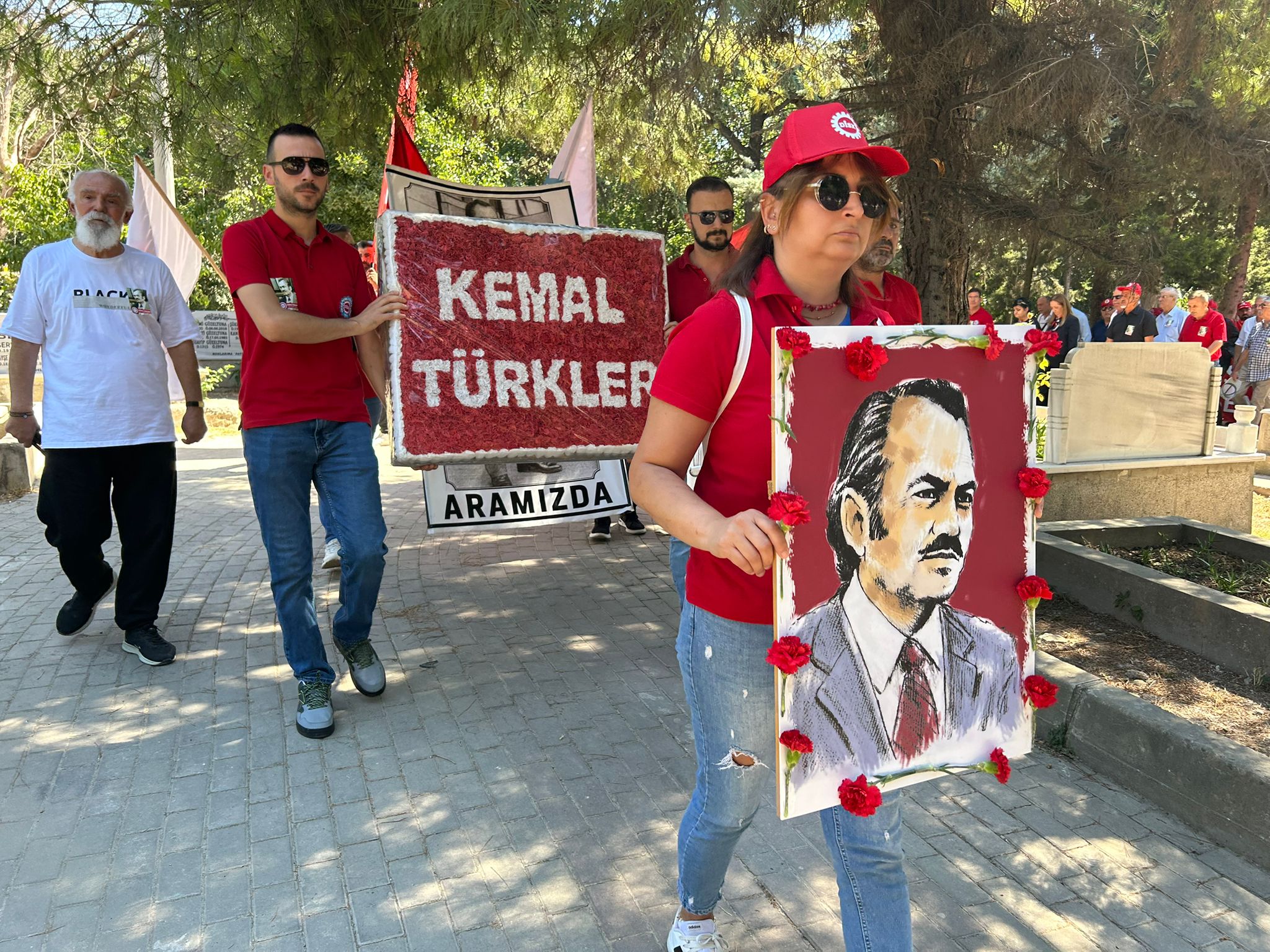 DİSK’in çağrısıyla yapılan anmada Topkapı Mezarlığı’na yürüyüş yapılırken, Kemal Türkler’in mezarına karanfil bırakılarak konuşmalar yapıldı.