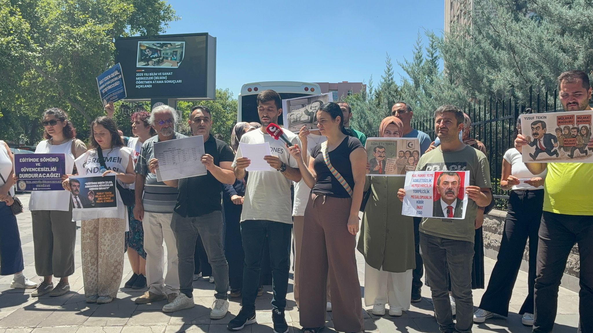Aylardır bakanlığın önünde eylem yapıyoruz. Hakkımızda iftiralar attınız, TRT’ye yalan haber yaptırdınız. Devletin imkanlarını kötüye kullandınız Yusuf Tekin. Siz tam bir öğretmen düşmanısınız. Ben yaptım oldu ile yaklaşık 10 yıllık bakanlık kariyerinizde hiçbir şeyi doğru yapmayıp binlerce öğretmenin hakkını çaldınız. Sizden kendi vekilleriniz, bakanlığın içinde çalışanlar bile şikayetçi. Olayları şahsileştiren bir bakan devlet aklına yakışmıyor, o koltukta bir dakika bile kalmanız ülkeye zarardır. Bizler Personel Genel Müdürü’yle konuşuyoruz, bir emsal karar yeterli diyor. Emsal karar çıktığı halde uygulanmıyor. Bakan Yardımcısı’yla görüşüyoruz ek atama veya kanun yoluyla bu iş çözülür diyor ama uygulanmıyor. Bizler tiyatro oynamıyoruz. Bu işi ya çözeceksiniz ya çözeceksiniz.
