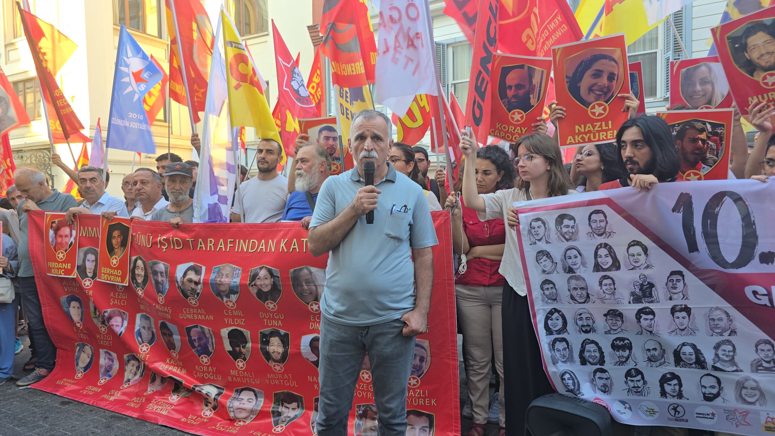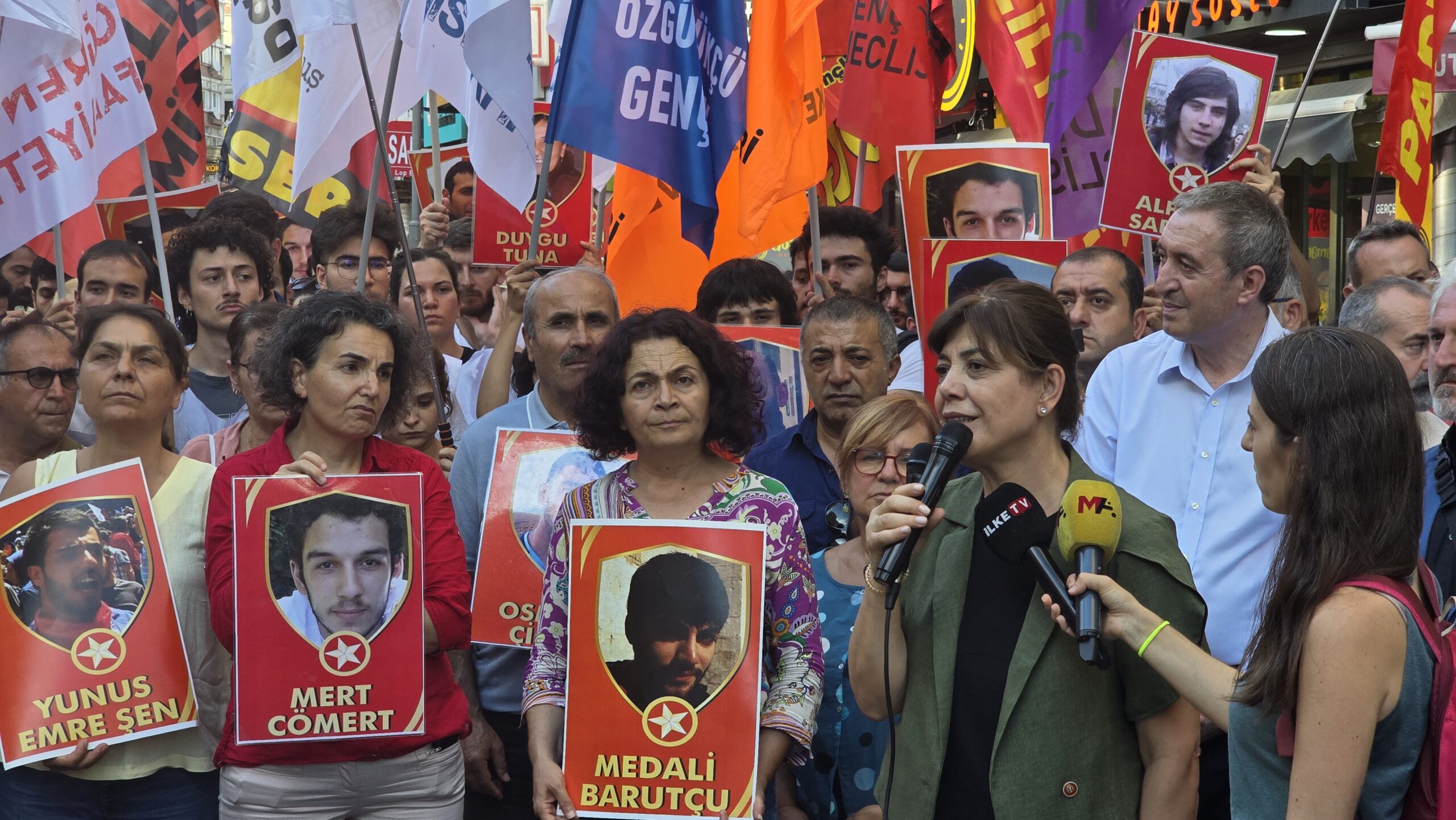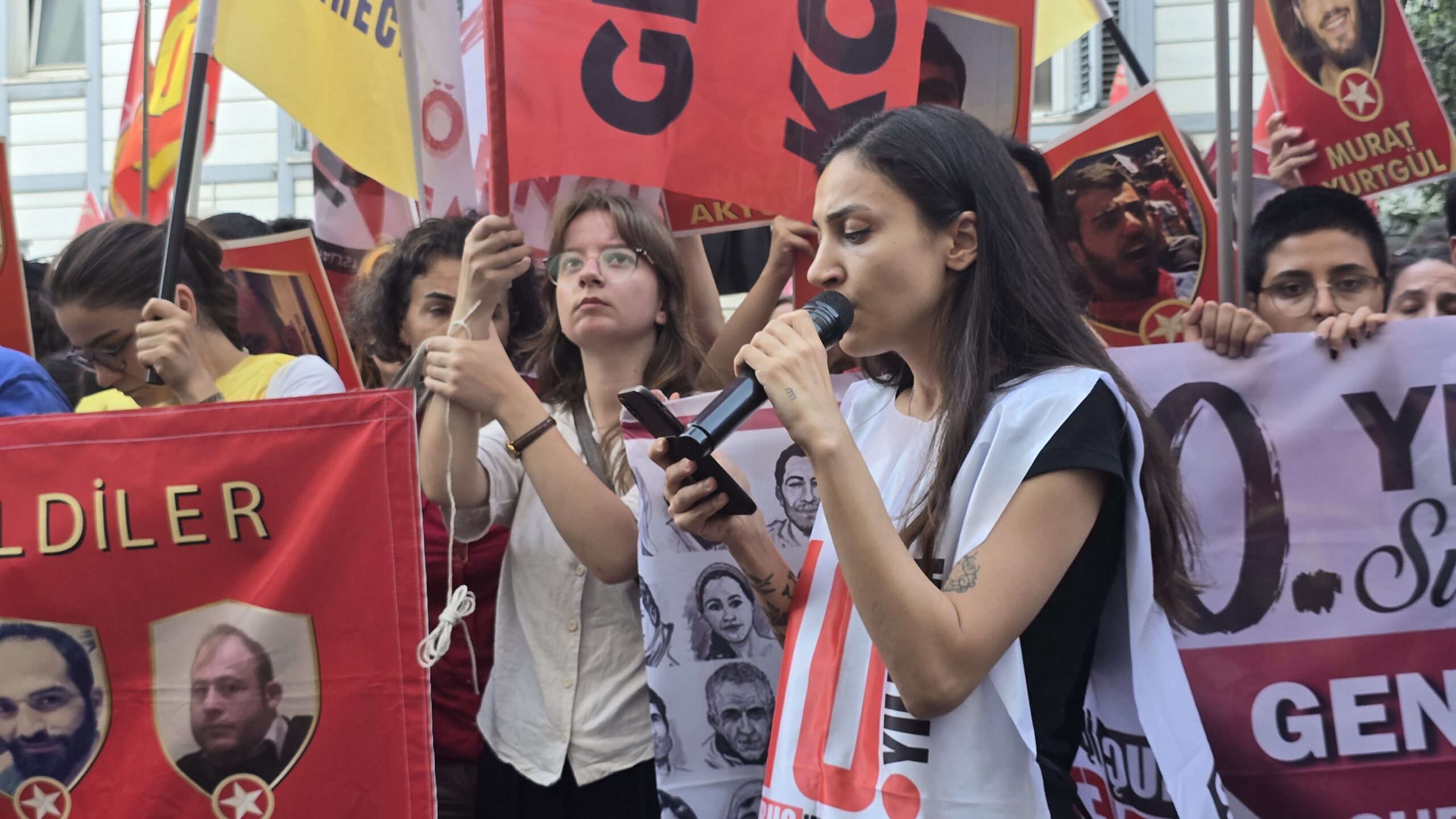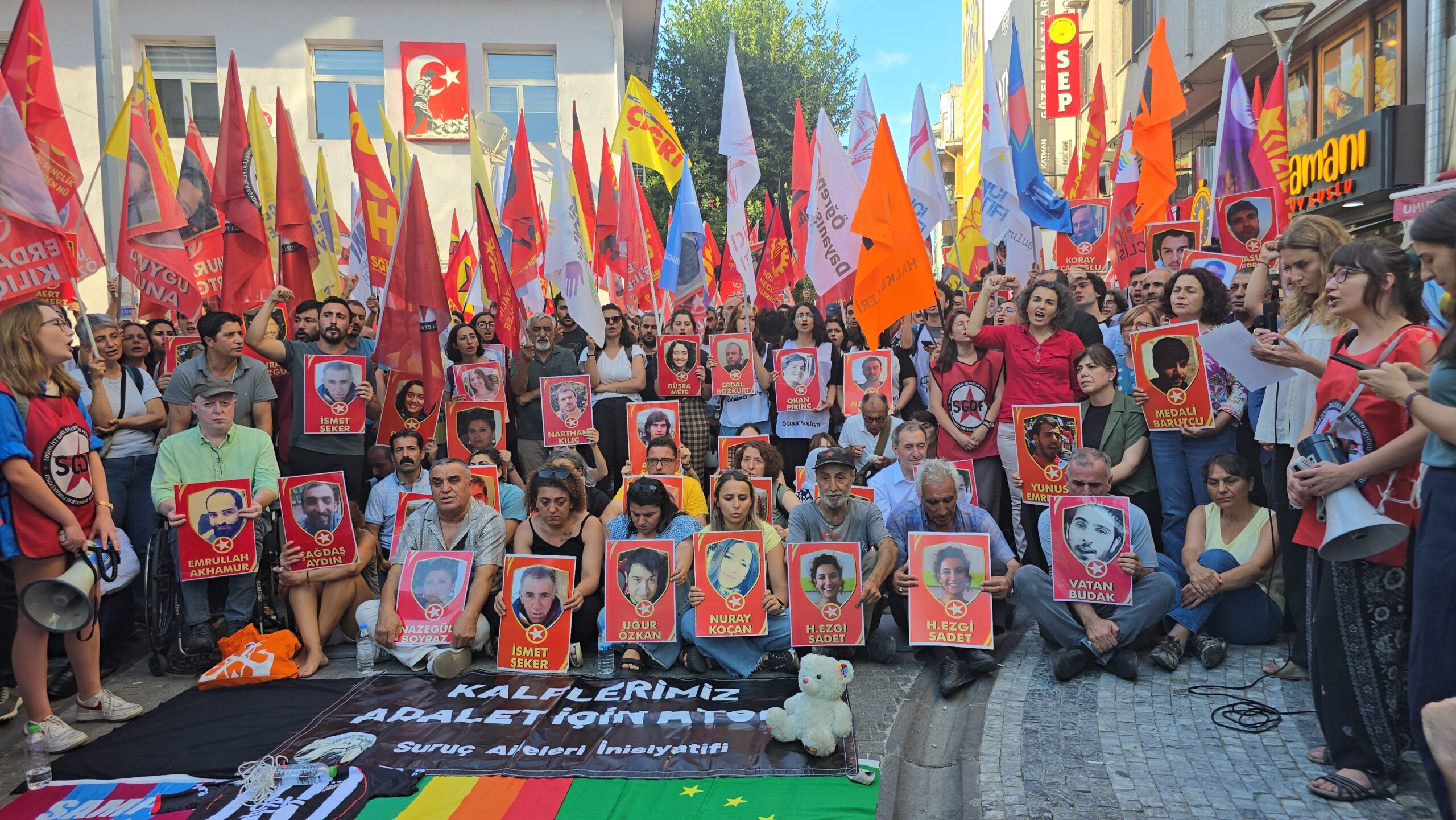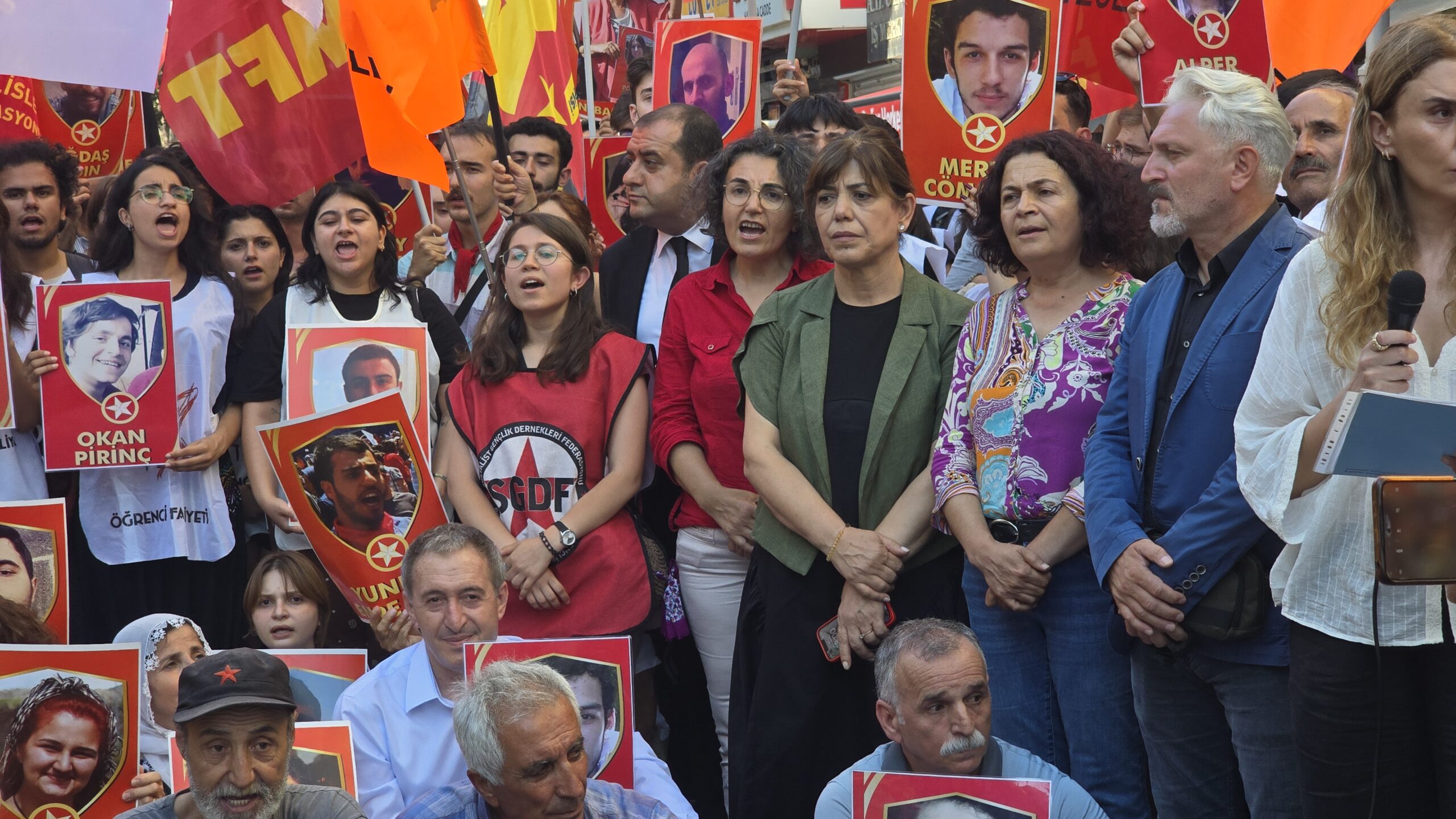 Ailelerden İsmet Şeker’in kızı söz aldı. SGDF Eş Başkanı Berfin Polat konuştu. Tutsak Hatice Deniz Aktaş’ın gönderdiği mektup okundu. Eyleme katılan sosyalistlere, siyasi parti ve demokratik kitle örgütleri, kadın örgütlerine selam verildi.