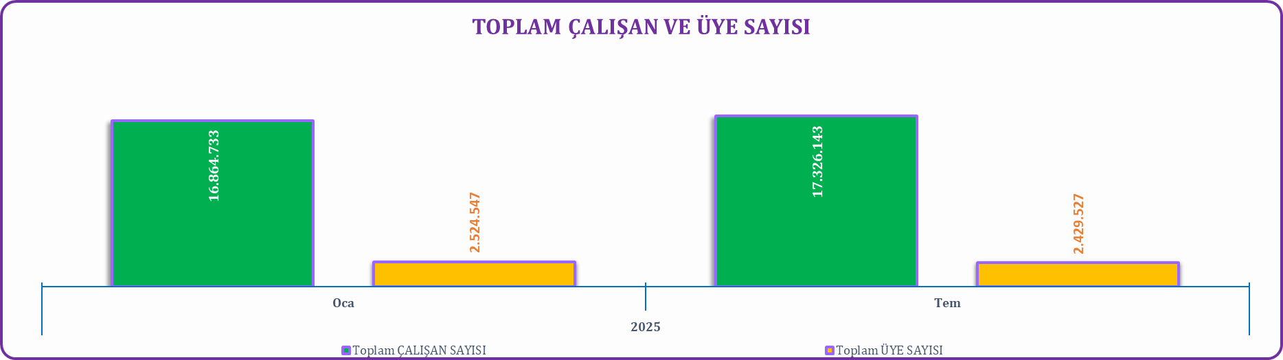 İstatistik verilerine göre çalışan sayısındaki genel artışa karşılık sendika üyesi işçilerin sayısında azalma görüldü. Sendika üyesi işçilerin sayısı Ocak 2025 istatistiğine göre yüzde 3,76 oranında düşerek 2 milyon 429 bin 527’ye indi. 17 işkolunda sendikalı işçilerin sayısında azalma görülürken 3 işkolunda (Basın, Taşımacılık, Konaklama) sendika üyesi sayısında artış oldu. Sendikalı üye kayıpları en yoğun (ortalama yüzde 7) olarak maden, dokuma ve inşaat işkollarında yaşandı.