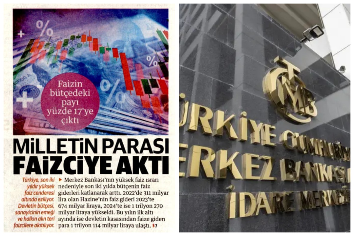 Merkez Bankası’nın yüksek faiz ısrarı nedeniyle son iki yılda bütçenin faiz giderleri katlanarak arttı. 2022’de 311 milyar lira olan Hazine’nin faiz gideri 2023’te 674 milyar liraya, 2024’te ise 1 trilyon 270 milyar liraya yükseldi. Bu yılın ilk altı ayında ise devletin kasasından faize giden para 1 trilyon 114 milyar liraya ulaştı.