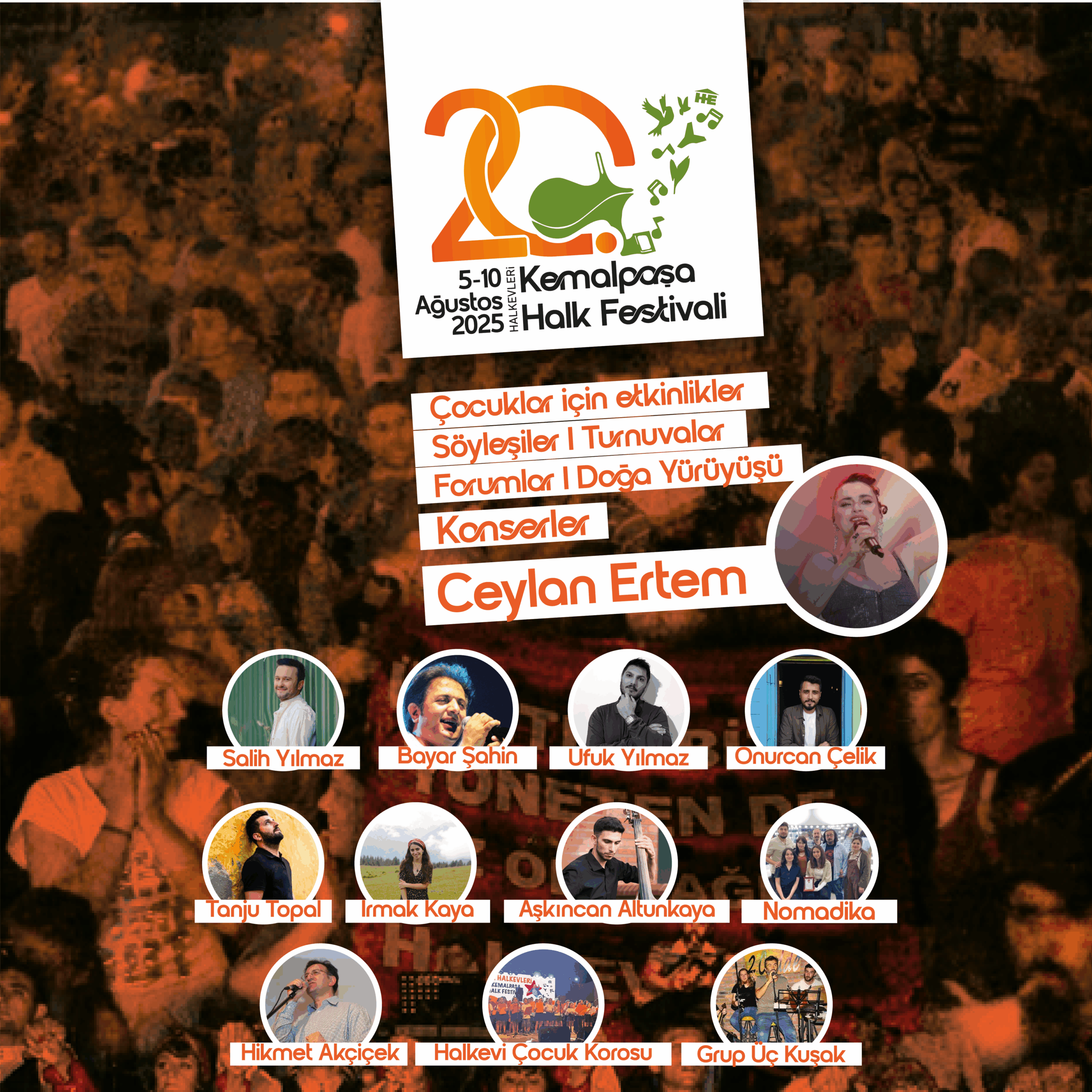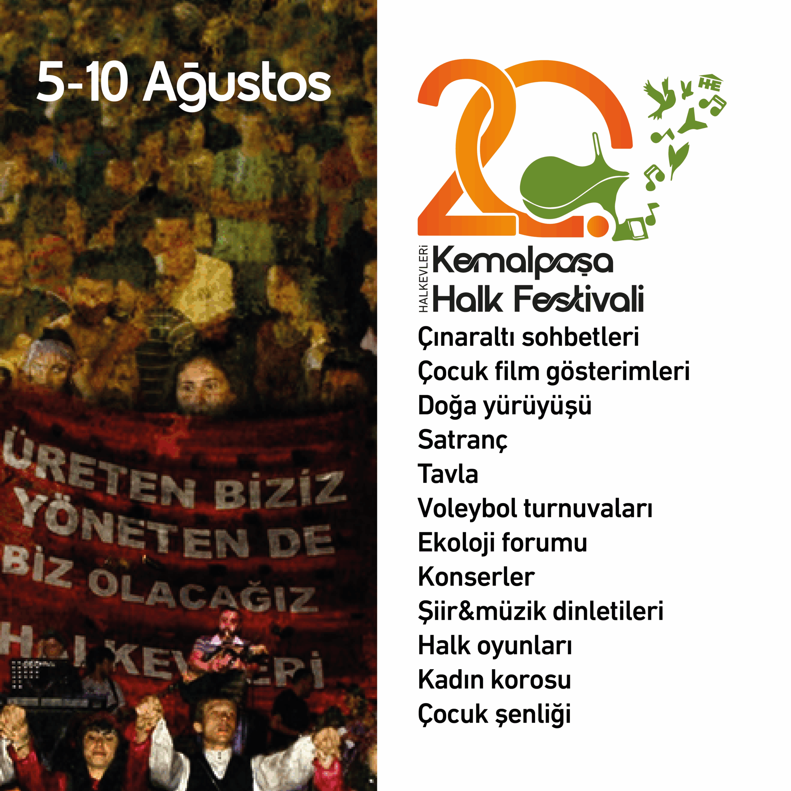 Halkevleri’nin öncülüğünde, 2004’den bu yana fonsuz ve sponsorsuz yapılan, imece ve dayanışmayla örgütlenen Halkevleri Kemalpaşa Halk Festivali 5,6,7,8,9,10 Ağustos tarihinde 20’ncisi düzelenlenecek. Festivalin 20. yılında kentte hazırlıklar yoğun bir şekilde devam ediyor.