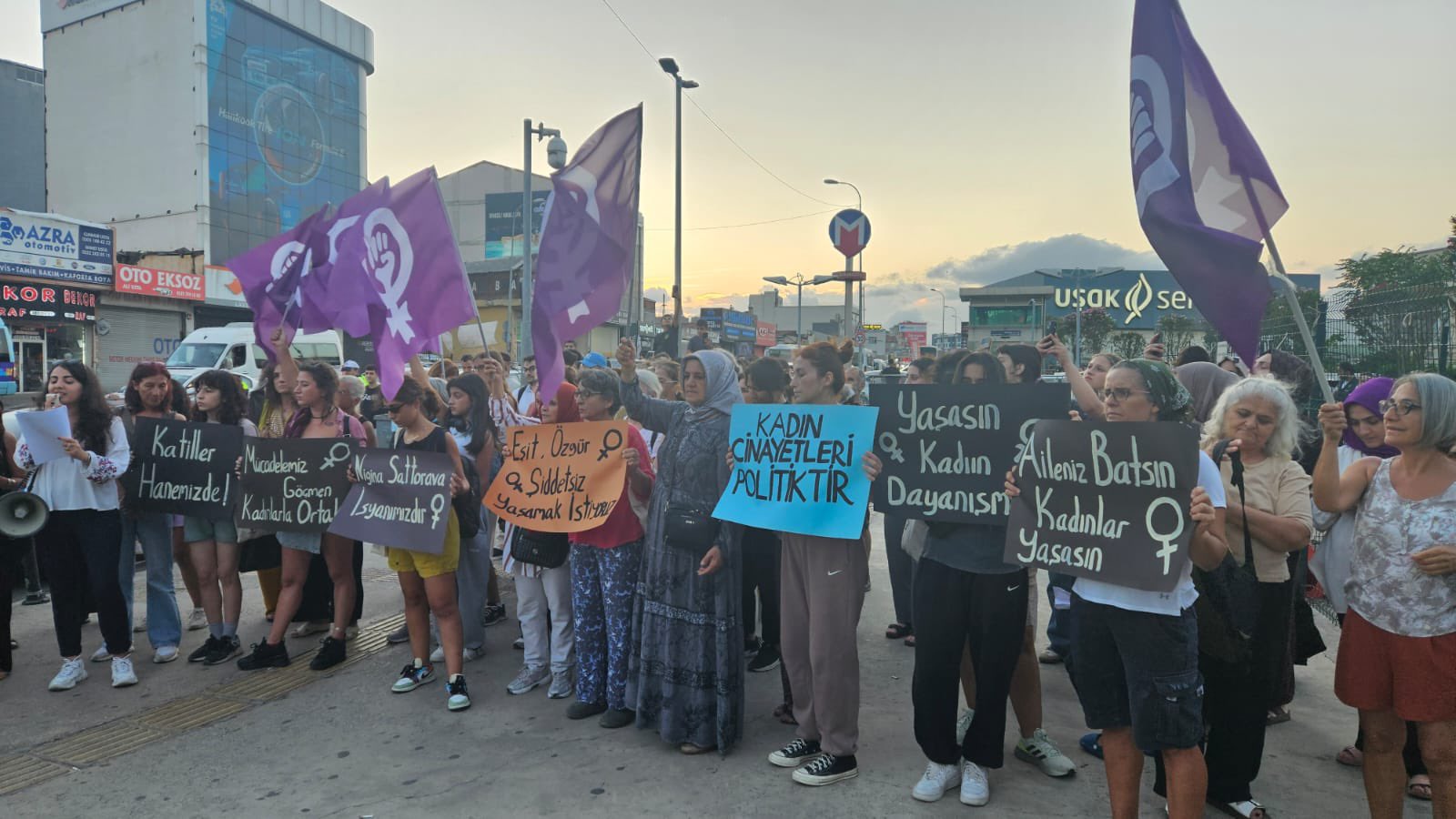 Kadın Cinayetlerine Karşı Feministler, Ümraniye’de Ihlamurkuyu metro çıkışında bugün (19 Ağustos) saat 19.30’da bir araya gelerek evli olduğu erkek tarafından sokak ortasında katledilen göçmen kadın için yürüdü.