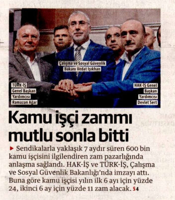 600 bini aşkın kamu işçisini ilgilendiren Kamu Çerçeve Protokolü, talep edilenin çok altında bir zam teklifine rağmen Türk-İş ve Hak-İş tarafından imzalandı. Türk-İş ve Hak-İş’in masaya otururken sunduğu ilk teklifte zam talepleri yüzde 90’ı buluyordu. Ancak son teklif olan ilk 6 ay yüzde 24, ikinci 6 ay ise günlük 50 lira artı yüzde 11 zamma imza atıldı. Böylece imzalanan sözleşme Mehmet Şimşek öncülüğünde hazırlanan Orta Vadeli Program’la (OVP) uyumlu oldu.