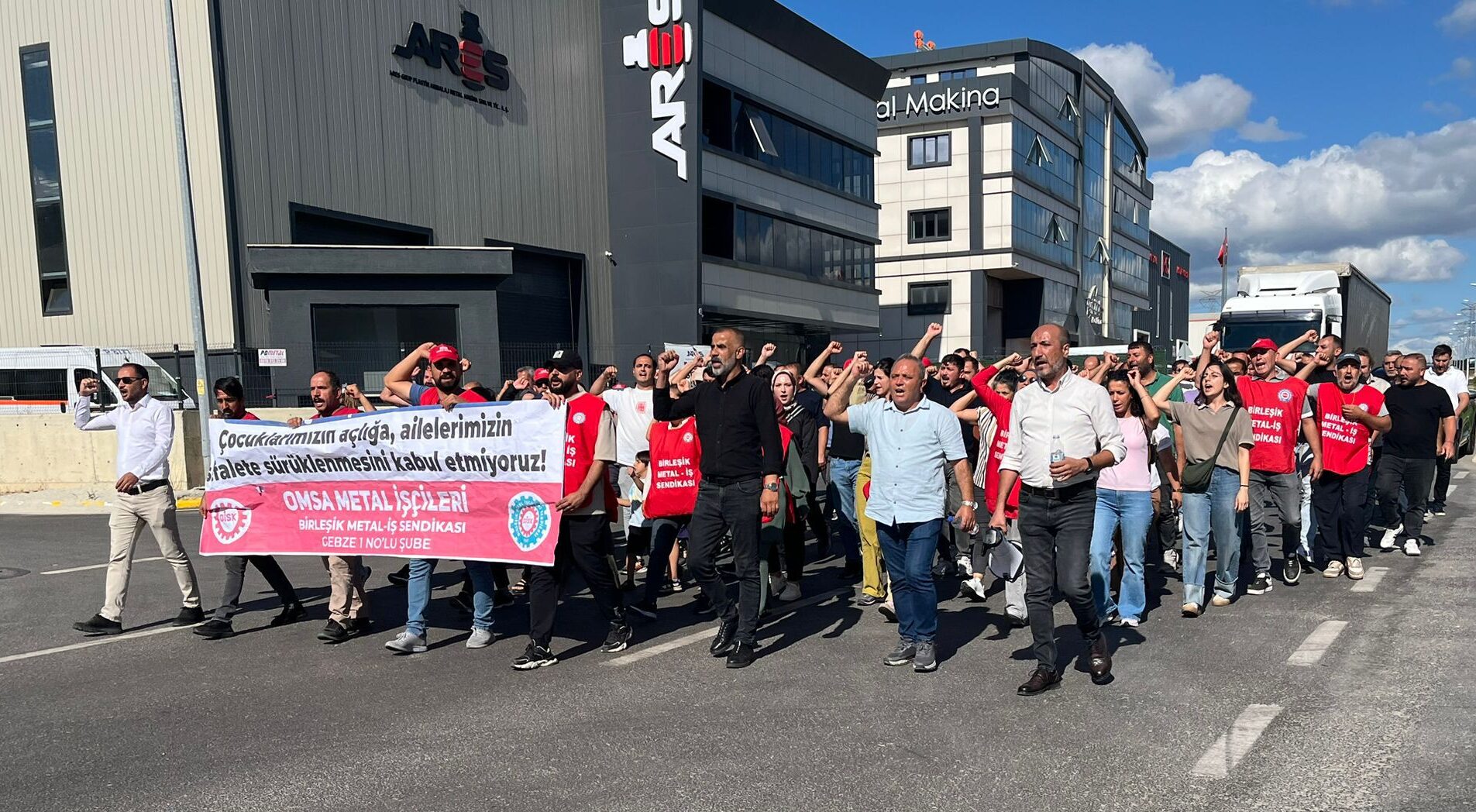 Sendikal haklarını kullandıkları için işten atılan, ilk günkü kararlılıkla mücadelelerini sürdüren OMSA Metal işçileri, Dilovası’ndaki OSB’nin içinde “Sendika hakkımız engellenemez!”, “Bu daha başlangıç, mücadeleye devam!” sloganlarıyla yürüdü.