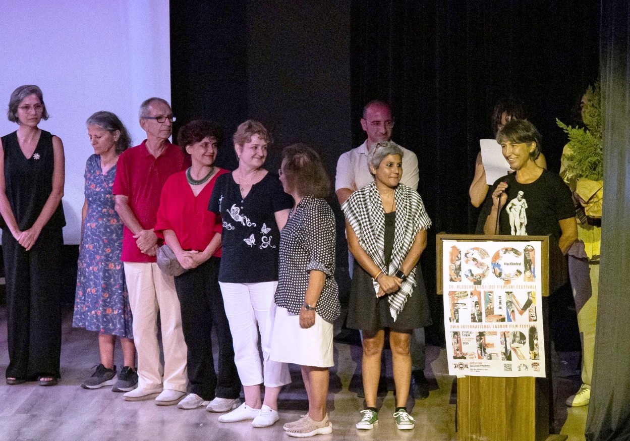 İşçi Filmleri Festivali Antalya galasında Antalya Arkeoloji Müzesi’nin yıkılmaması için mücadele veren, kentin belleğini savunan Müze Çalışma Grubuna (MÇG), İFF dayanışma plaketi verildi.