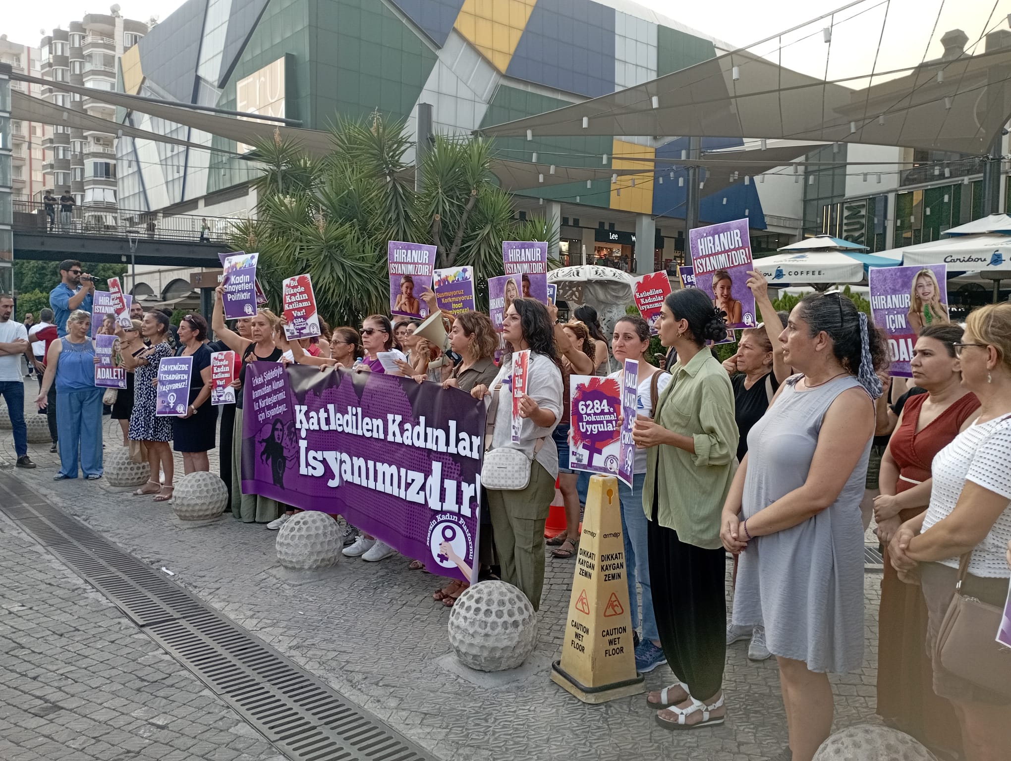 Mersin’de 31 Ağustos günü 16 yaşındaki Hiranur Nilgün Aygar 19 yaşındaki erkek arkadaşı tarafından katledildi. Mersin Kadın Platformu’nun çağrısıyla kadınlar Hiranur için Forum AVM’de buluşup el ele tutuşarak zincir oluşturdular. Kadınlar yaşam zincirinin ardından basın açıklaması yaptı.