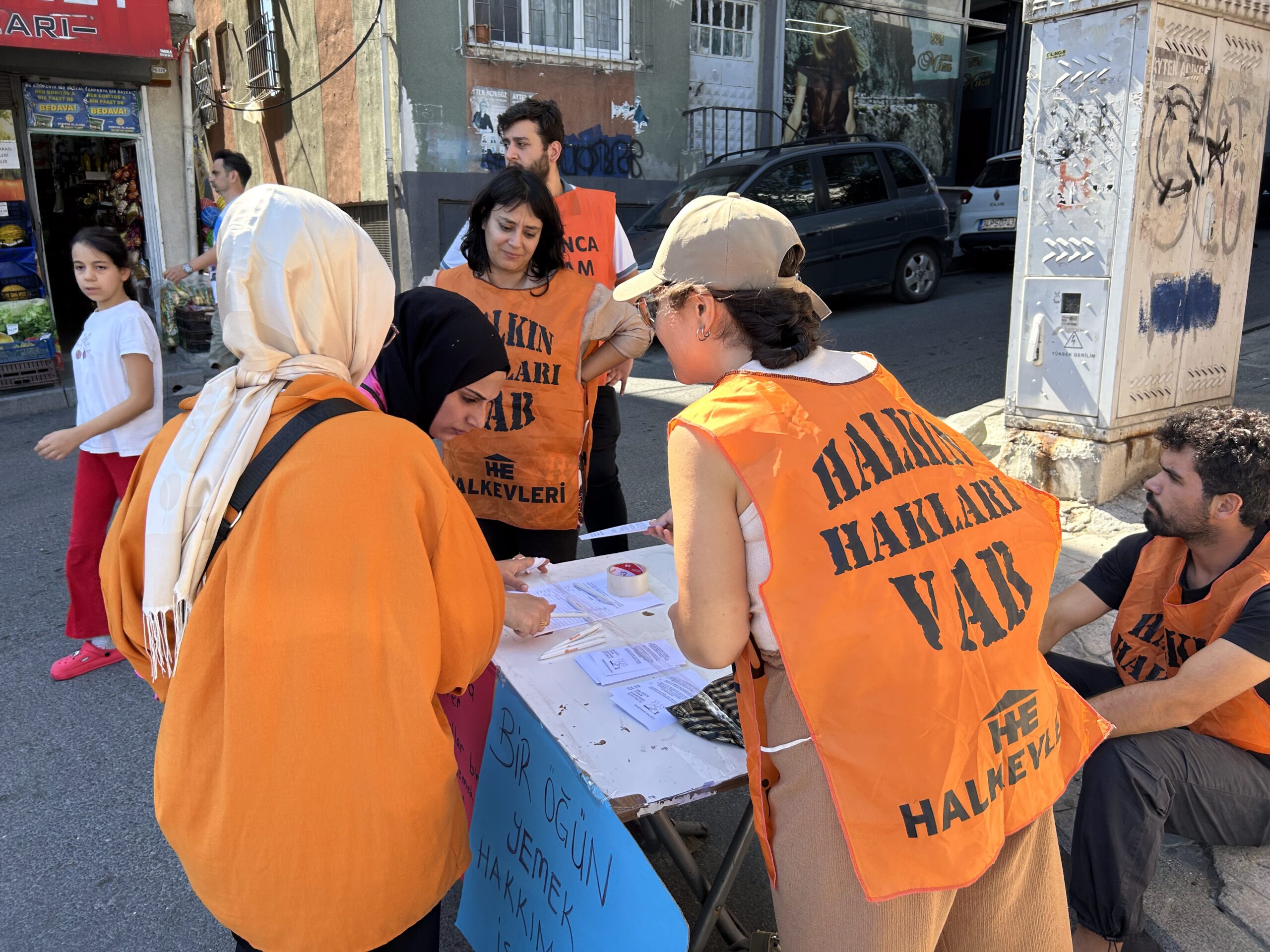 Okmeydanı Halkevi, kayyum Ertürkmen’in öğrencilerin yemeğine göz dikmesine karşı imza kampanyası başlattı. Okul çıkışında imza toplayan Halkevciler, velileri dayanışmaya çağırdı.