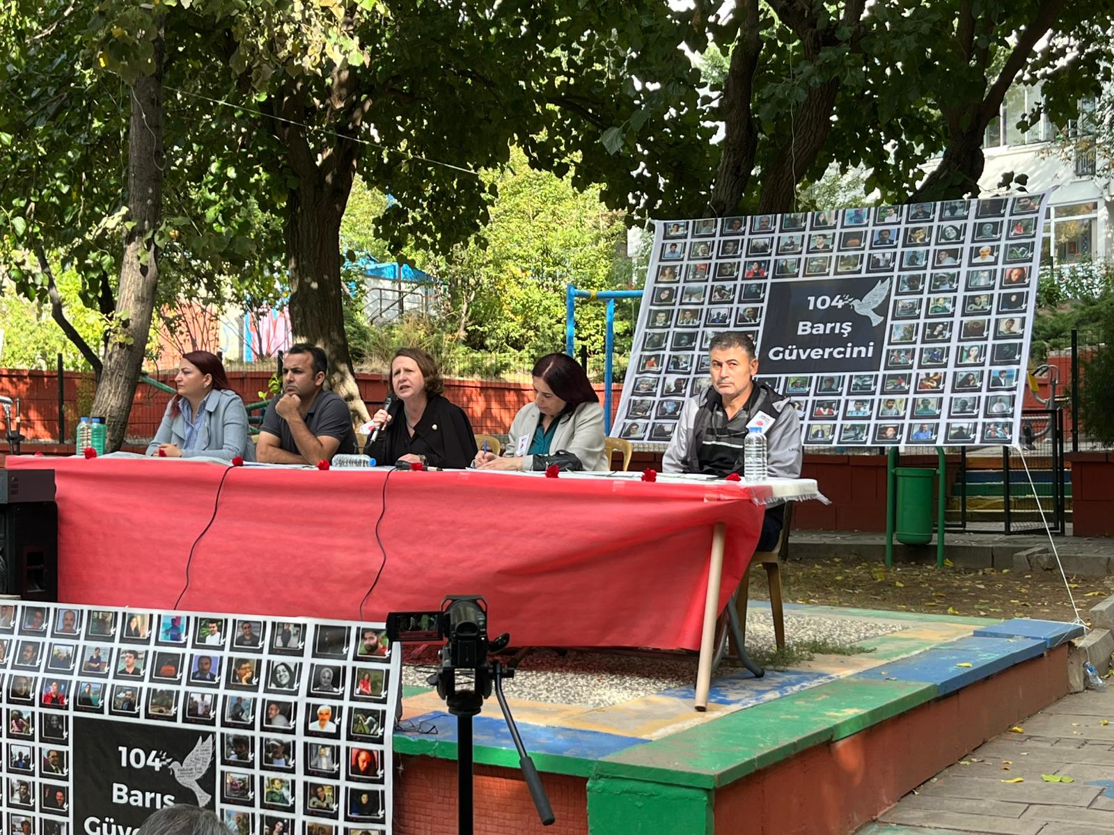 10 Ekim davası avukatları adına konuşan Av. İlke Işık ise katliamın ardından hukuki sürece dair bilgi verdi. Işık, mahkemede 10 sanığa 101 kez ağırlaştırılmış müebbet hapis cezası verildiğini ve toplamda 19 sanığın yargılama boyunca tahliye edilmediğine dikkat çekti. IŞİD davalarında böyle bir durumun olmadığını, ara duruşmalarda sürekli tahliye kararlarının çıktığını belirtti. Işık, o dönem Antep Valisi olan Ali Yerlikaya başta olmak üzere sorumlu tüm kamu görevlilerinin de yargılanması gerektiğini ifade ederken gerçek adaletin ancak tüm sorumluların yargılanmasıyla sağlanabileceğini söyledi.