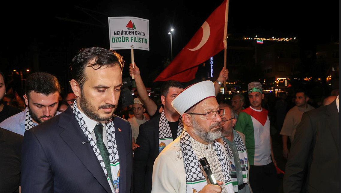 Dönemin Diyanet İşleri Başkanı Erbaş Sultanahmet’te Filistin’le dayanışma yürüyüşünde.