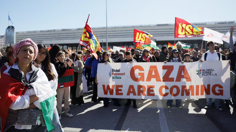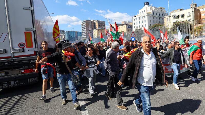 Küresel Sumud Filosu’nun İsrail tarafından durdurulması gönüllülerin alıkonmasına karşı İtalya’da sendikalar genel grev ilan etti. İtalya Genel İş Konfederayonu’nun (CGIL) kararına, metal işçileri sendikası FIOM ile USB sendikası da destek verdi. Genel grev kapsamında on binler meydanlara aktı