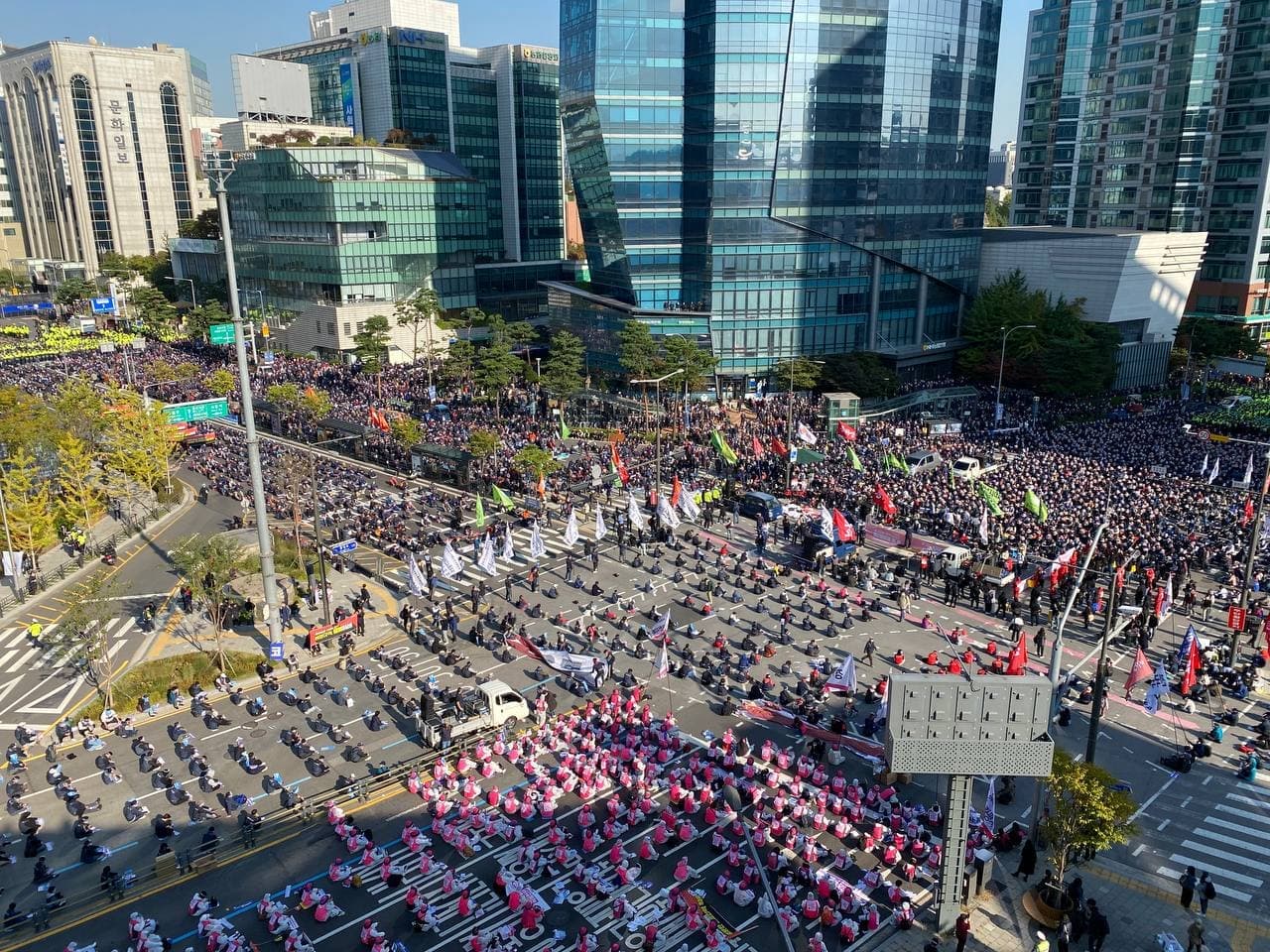 Güney Kore’de on binlerce işçi, iş güvencesi, söz, yetki, karar hakkı ve kamulaştırma talebiyle grevdeydi