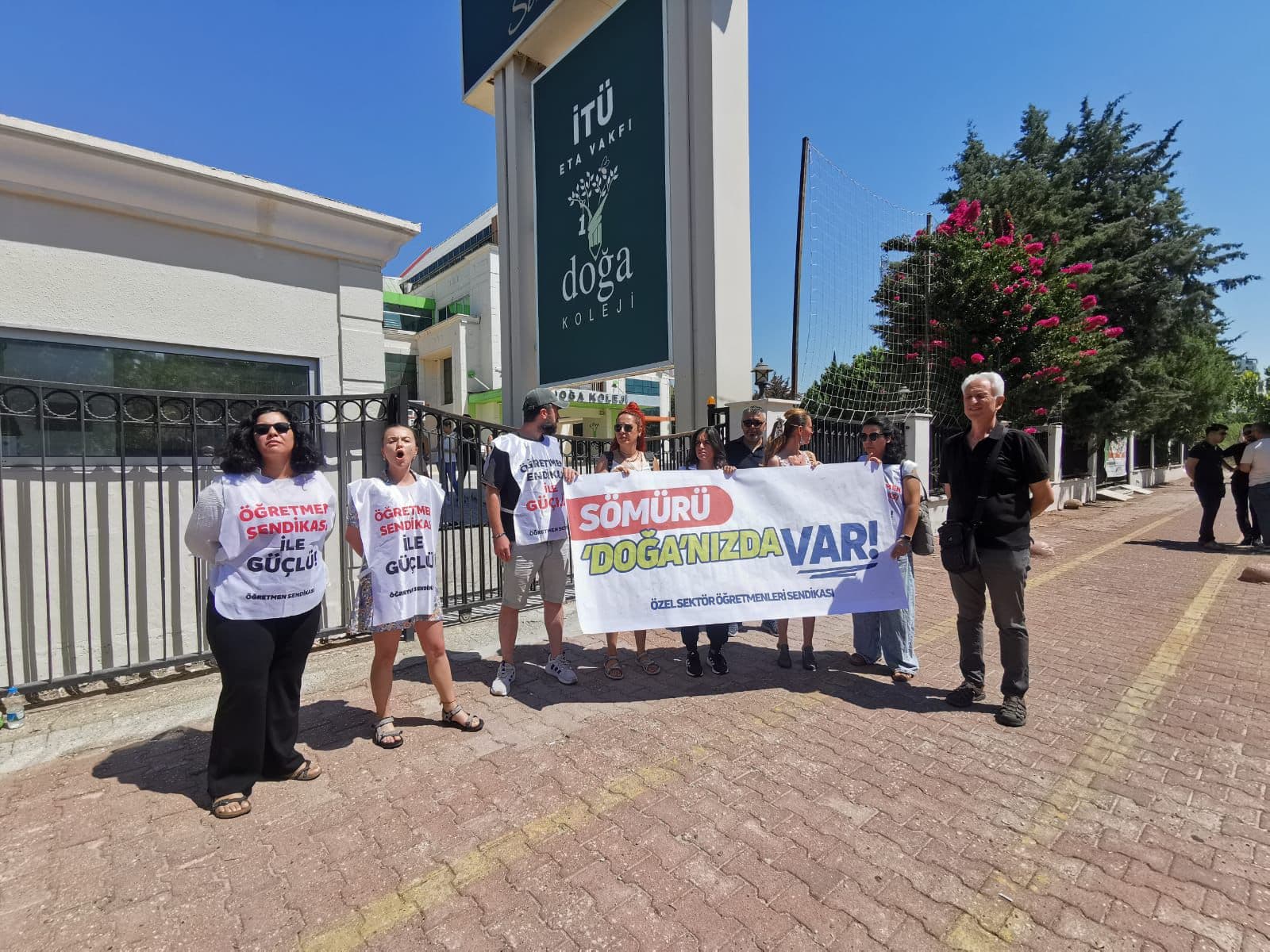 Antalya’da öğretmenler Doğa Koleji önünde: “Öğretmen düşmanlığına son verin”