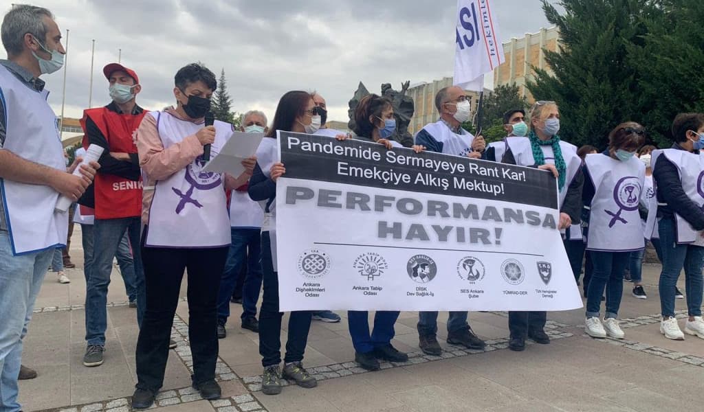 Ankara sağlık emek ve meslek örgütleri performans sistemine karşı eylemde: “İş yükümüz, riskimiz artıyor, maaşlarımız eriyor!”