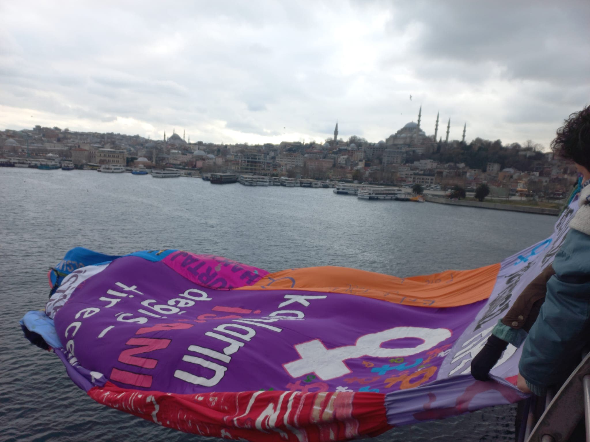 Kadınlar, Haliç metro köprüsüne pankart astı: “Kadınların isyanı değiştirecek!”
