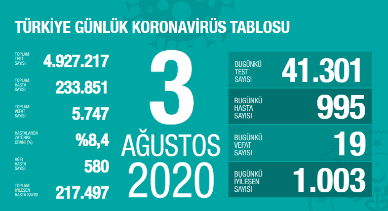 Koronavirüs ile 125. gün: Vaka sayısı 214 bin 1’e, ölüm sayısı 5 bin 382’ye yükseldi