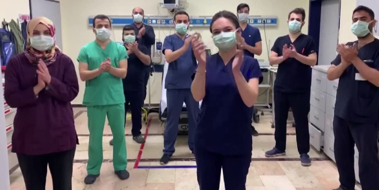 Koronavirüsle mücadele eden sağlık çalışanlarına alkışlı destek sürüyor